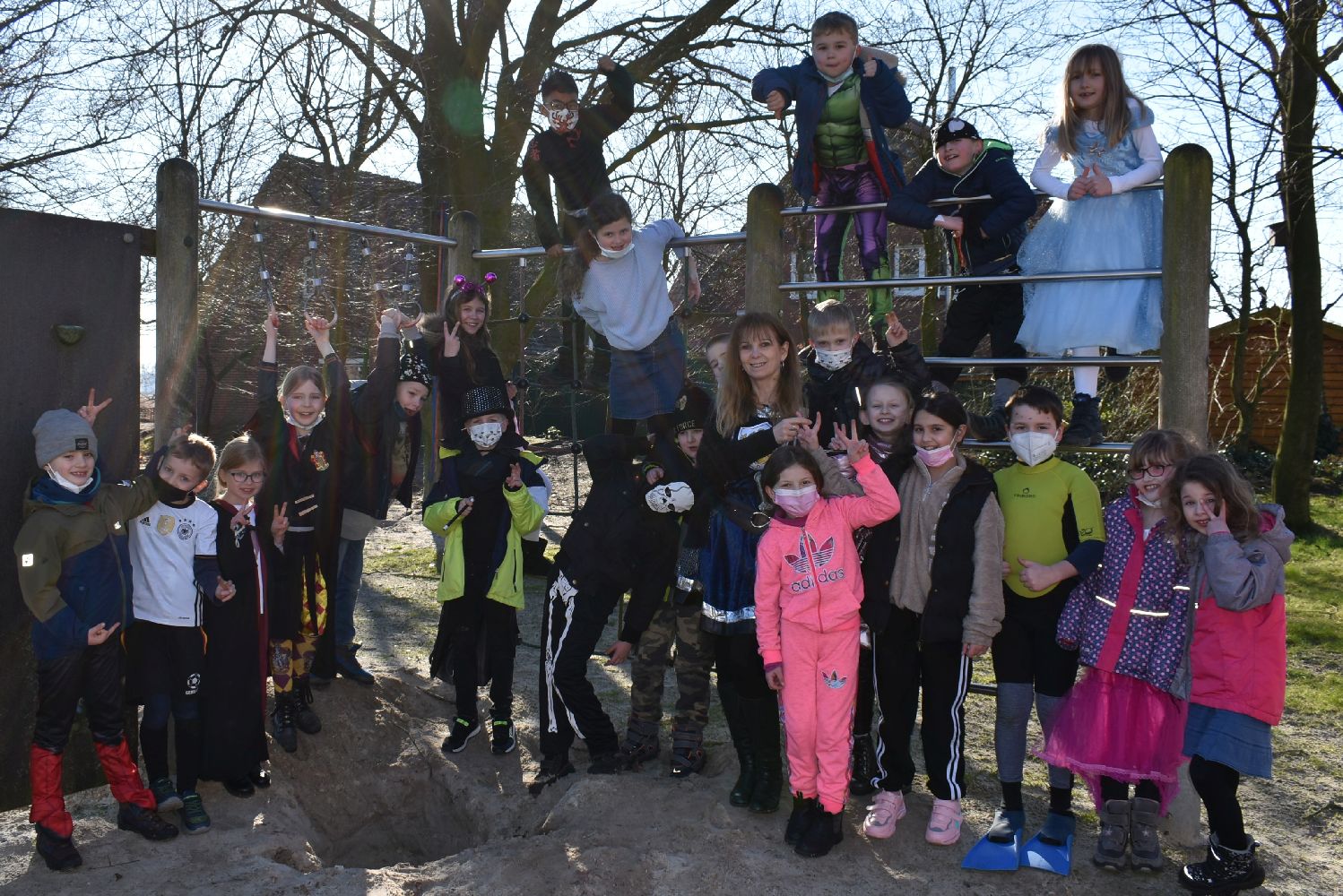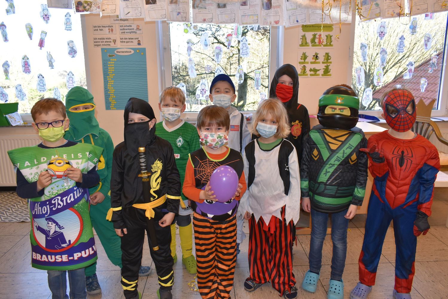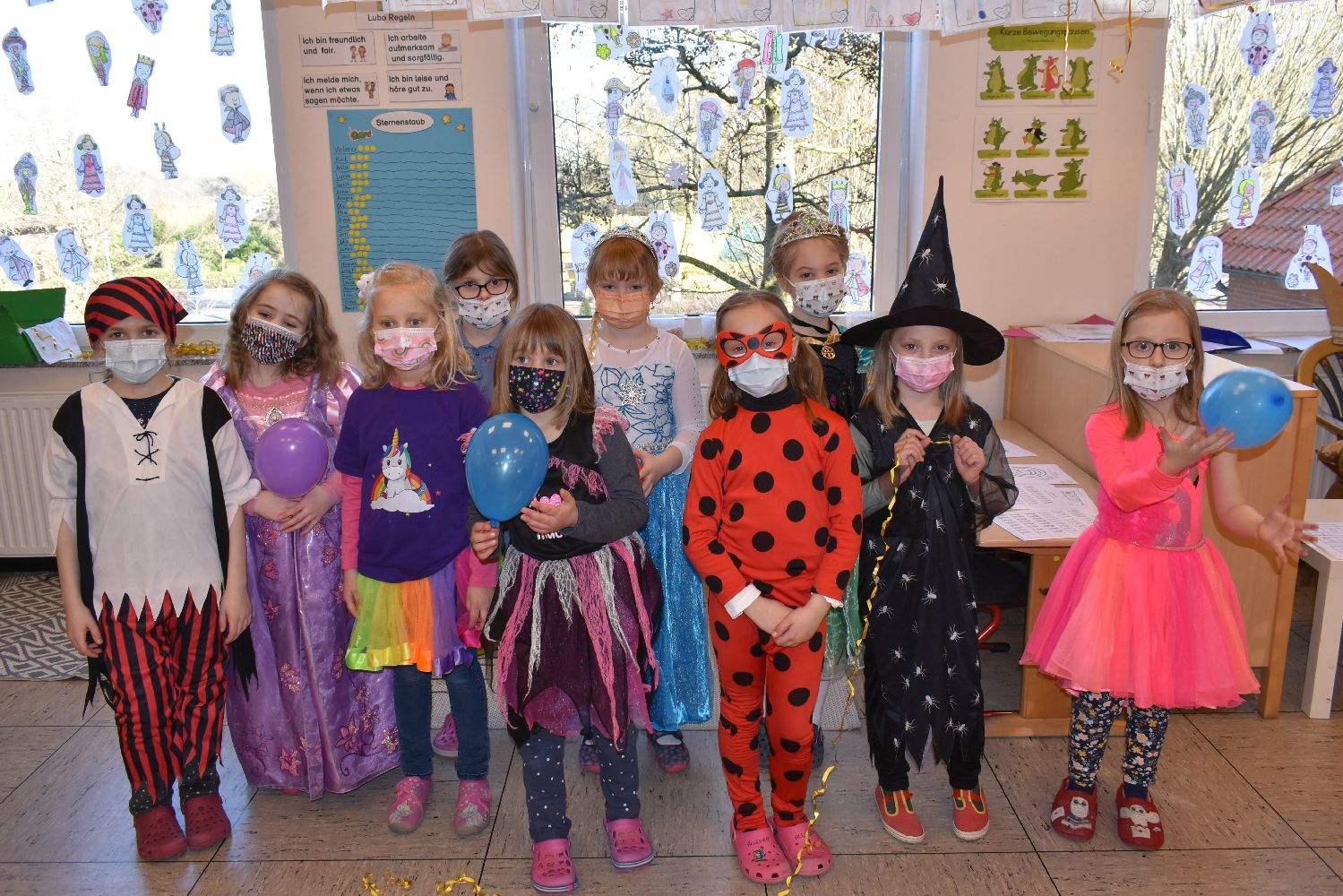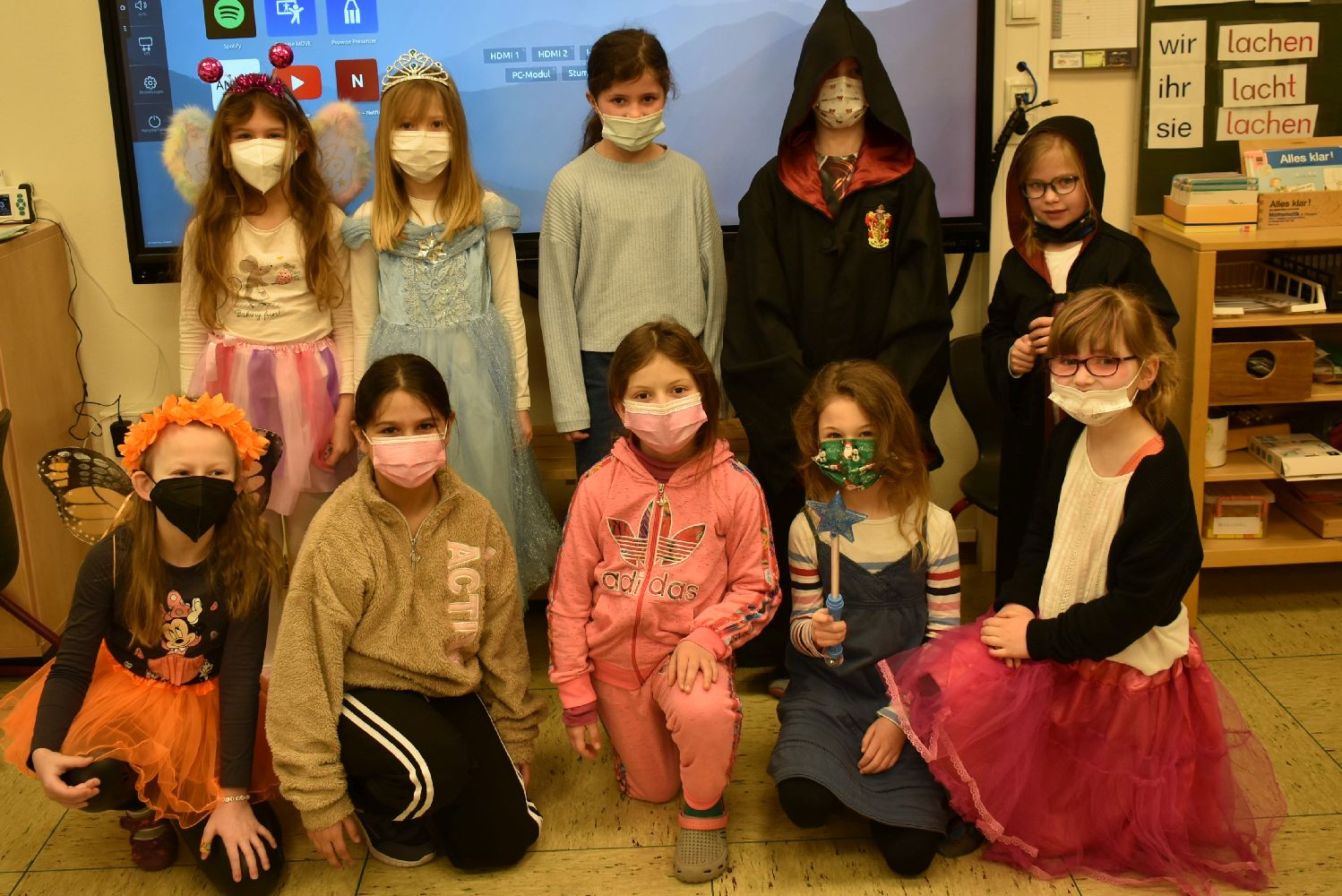 Natürlich konnte der Karneval aufgrund der derzeitigen Coronalage noch nicht in einem größeren Rahmen stattfinden. Aber die Kinder hatten sich trotzdem schon lange auf den Rosenmontag gefreut, denn im kleinen Kreis der Klassengemeinschaft standen an diesem Schulvormittag viele kreative und spielerische Aktivitäten auf dem Programm. Wer wollte durfte verkleidet in die Schule kommen und viele Kinder machten davon Gebrauch. Dank der digitalen Tafeln konnte sogar etwas Kinoatmosphäre in die Klassenräume einziehen und der Duft von Popcorn und anderen Knabbereien erfüllte schon bald die Luft. Und wer hätte vor einem Jahr gedacht, dass auch in diesem Karneval die Maske und das regelmäßige Lüften noch dazugehören würden.