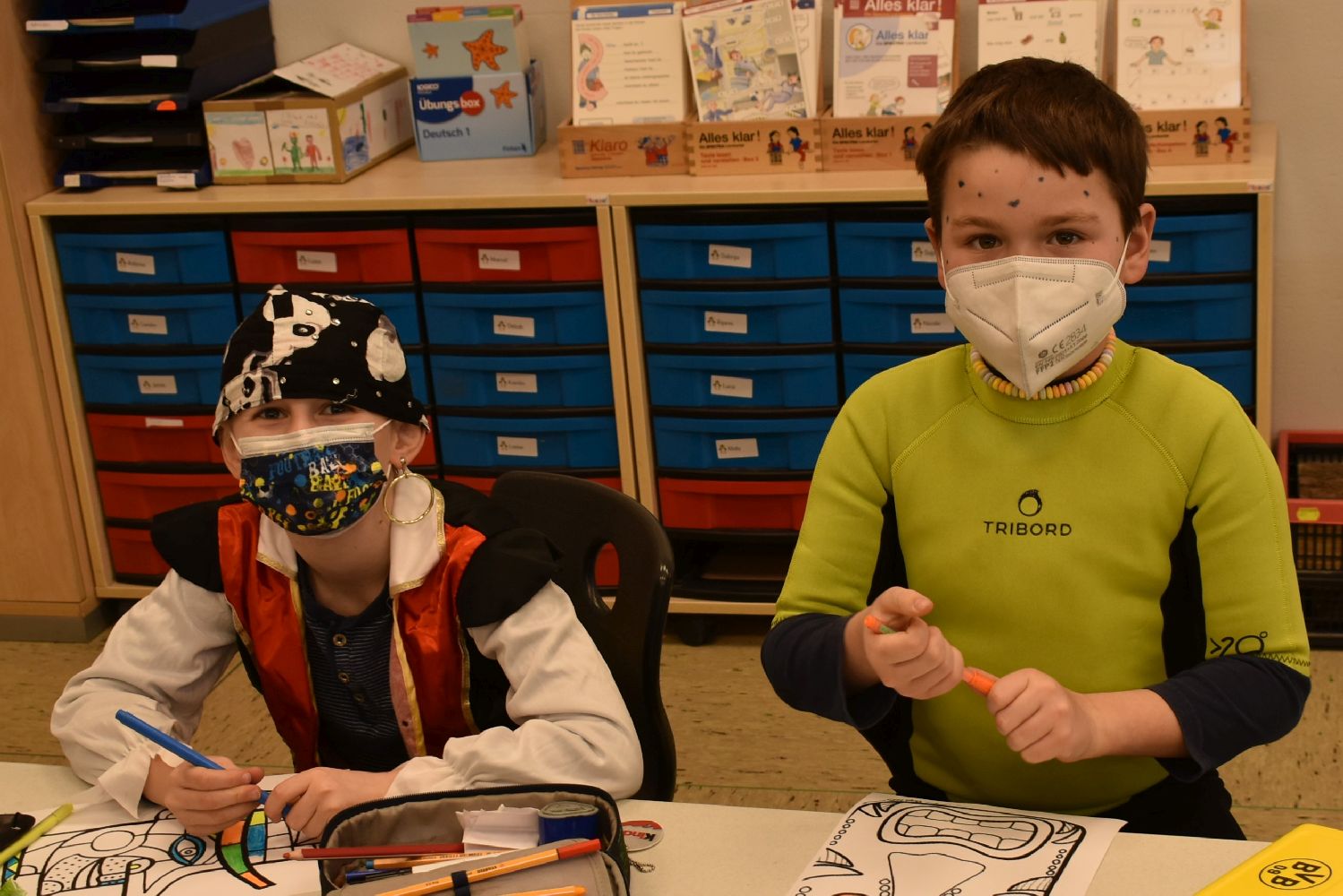 Natürlich konnte der Karneval aufgrund der derzeitigen Coronalage noch nicht in einem größeren Rahmen stattfinden. Aber die Kinder hatten sich trotzdem schon lange auf den Rosenmontag gefreut, denn im kleinen Kreis der Klassengemeinschaft standen an diesem Schulvormittag viele kreative und spielerische Aktivitäten auf dem Programm. Wer wollte durfte verkleidet in die Schule kommen und viele Kinder machten davon Gebrauch. Dank der digitalen Tafeln konnte sogar etwas Kinoatmosphäre in die Klassenräume einziehen und der Duft von Popcorn und anderen Knabbereien erfüllte schon bald die Luft. Und wer hätte vor einem Jahr gedacht, dass auch in diesem Karneval die Maske und das regelmäßige Lüften noch dazugehören würden.