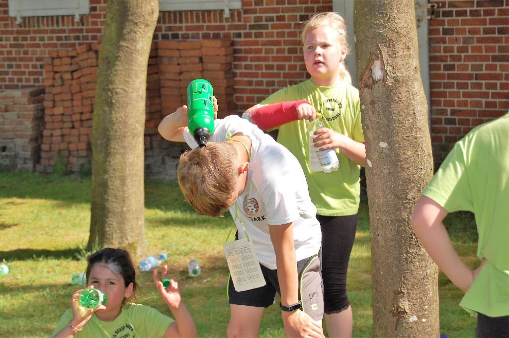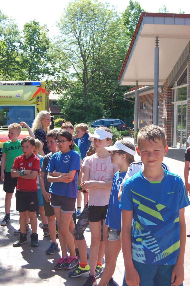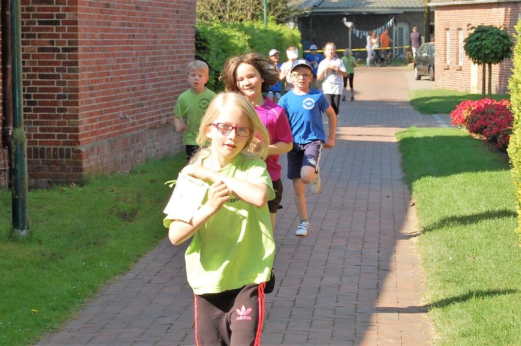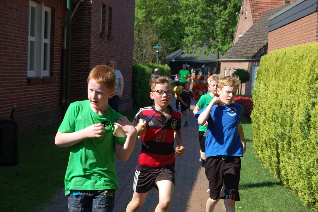 Bei herrlichstem Sommerwetter liefen die Schülerinnen und Schüler unserer Schulgemeinschaft am 09.05.2018 Runde um Runde für unseren gemeinsamen Inseltag, denn um die Fahrt zur ostfriesischen Insel Baltrum am 11.06.2018 finanzieren zu können, statt ein Sponsorenlauf auf dem Programm. Die Kinder gaben alles und trotzten der Hitze. Voller Stolz holten sie sich nach jeder Runde ihren Stempel bei den hilfsbereiten Eltern ab und liefen nach kurzer Erfrischungspause auch schon weiter. Viele Eltern und Großeltern standen an der Strecke und unsere Sportlehrkräfte liefen beherzt mit. Das motivierte die Kinder noch mehr. 370 m war eine Runde lang und die besten Läufer und Läuferinnen kamen auf sagenhafte 20 und mehr Runden! Einem erlebnisreichen Tag auf der Insel Baltrum mit allen Schülerinnen, Schülern, Lehrkräften und Mitarbeitern steht nun nichts mehr im Wege!