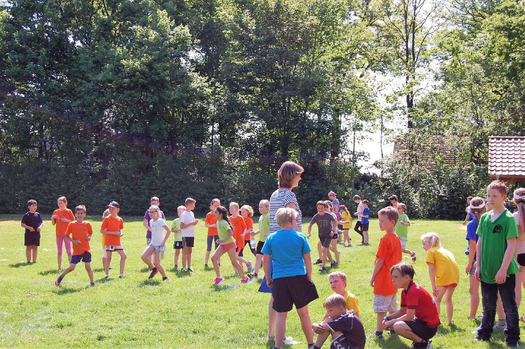 Im Anschluss an den Sponsorenlauf hatten die Sportlehrkräfte ein Völkerballturnier organisiert, bei dem es „tierisch“ zuging. In altersgemischten Gruppen kämpften die „tierischen“ Teams um den Einzug ins Finale. Am Ende setzten sich die „Katzen“ gegen die „Pferde“ und „Schweine“ durch.