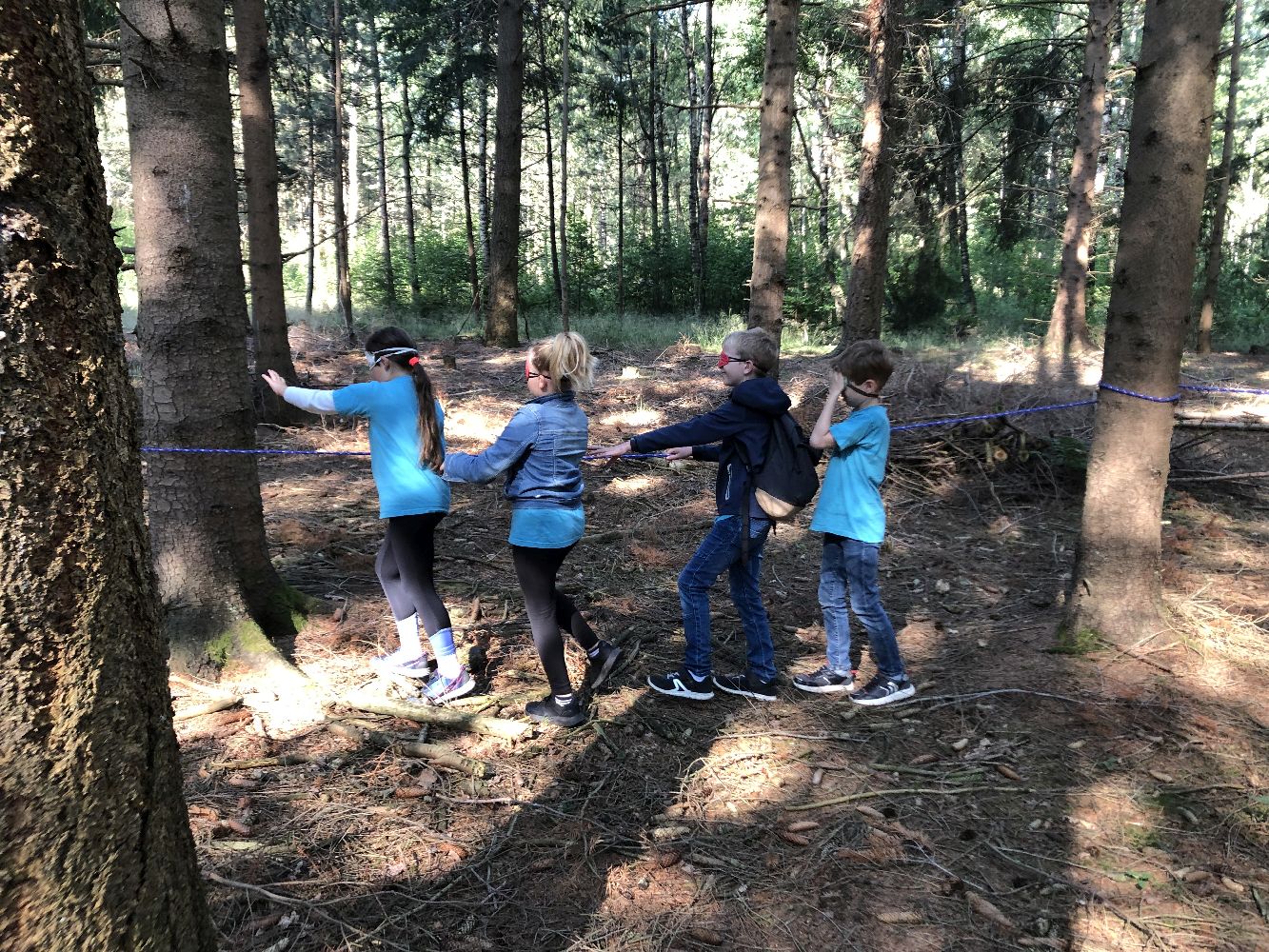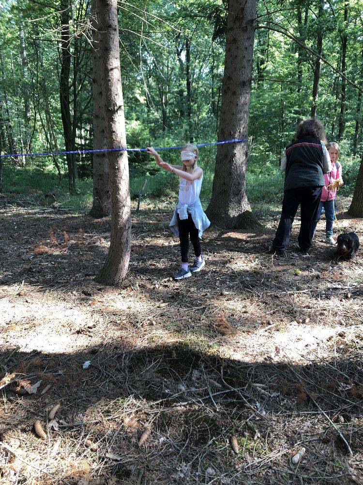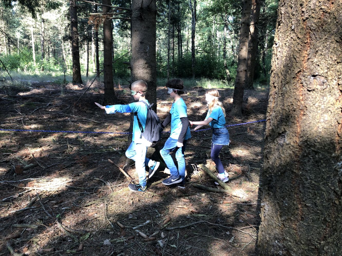Den Wald mit allen Sinnen erfahren hieß es dann, als die Kinder mit verbundenen Augen an einem Seil entlang einen Teil des Weges zurücklegen sollten. „Das habe ich mir viel leichter vorgestellt“, hörte man dabei von einigen Kindern.