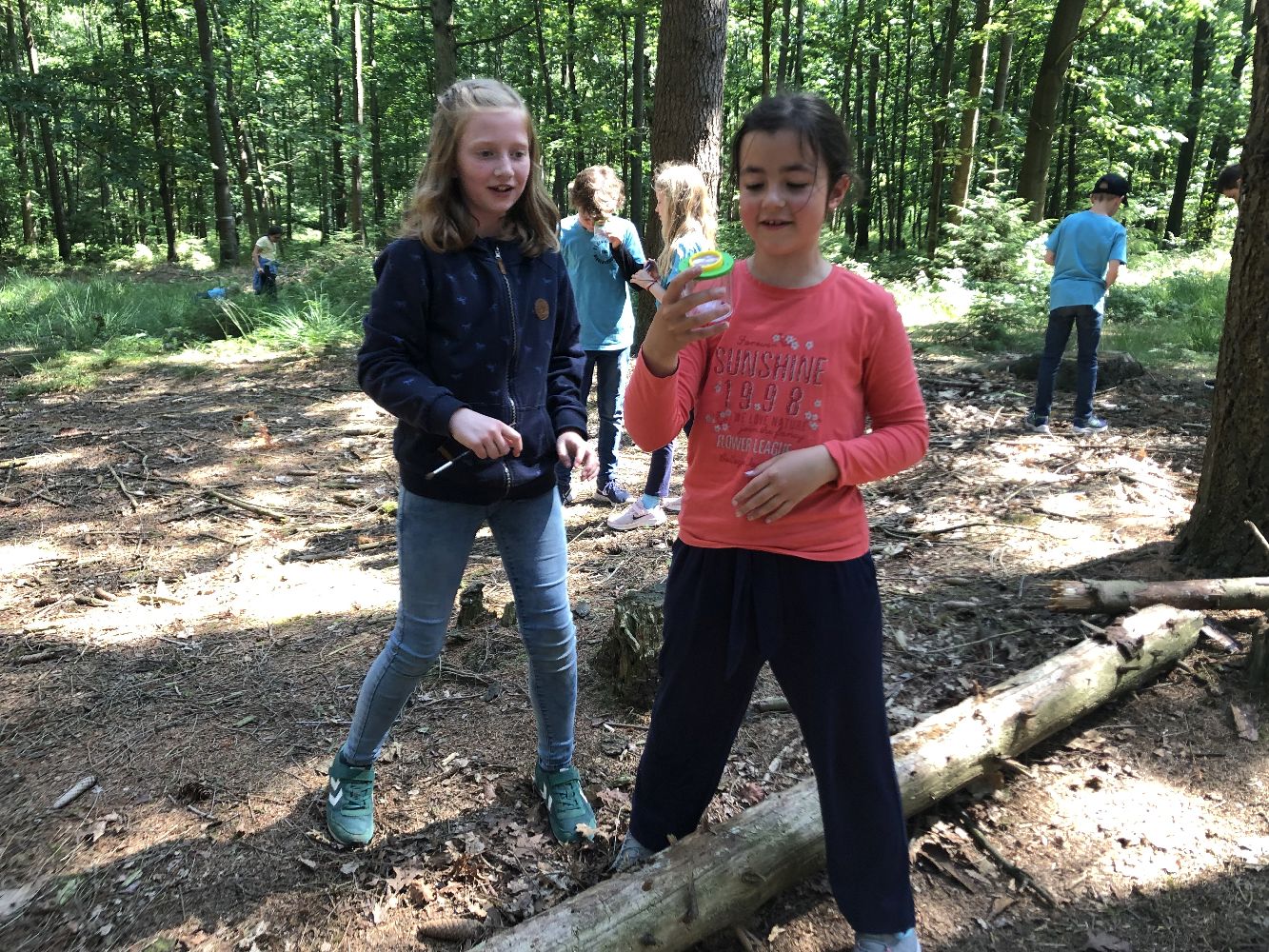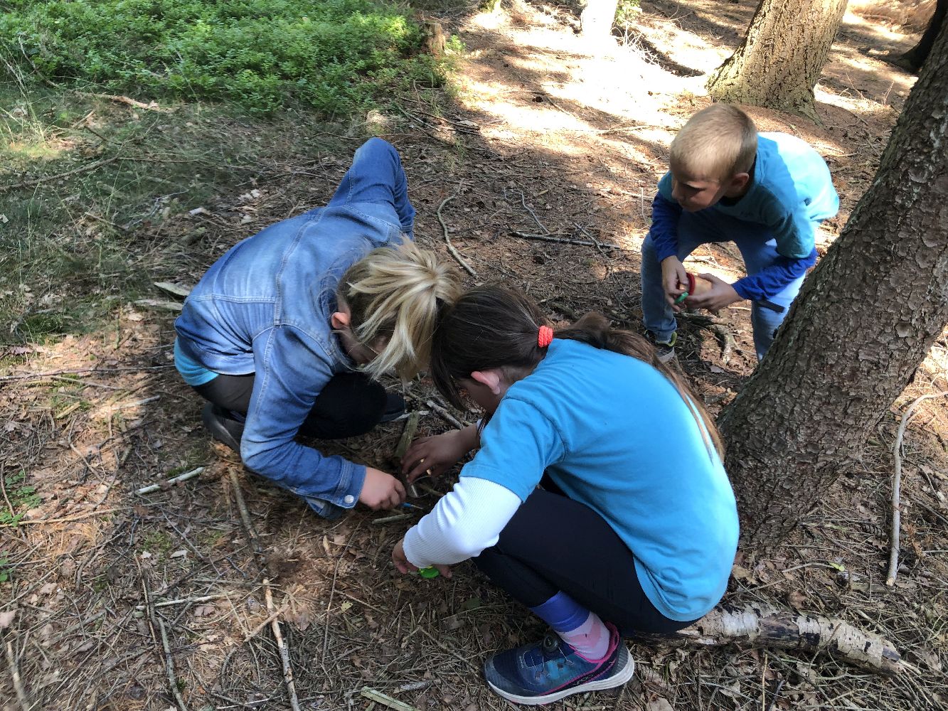 Später bekamen die Kinder von der Waldpädagogin noch Pinsel und Becherlupe, um auch kleinere Waldbewohner entdecken und beobachten zu können. Viele waren erstaunt, was es alles auf dem Waldboden zu entdecken gab und zeigten stolz ihre Funde, die sie selbstverständlich danach wieder in die Freiheit entließen.