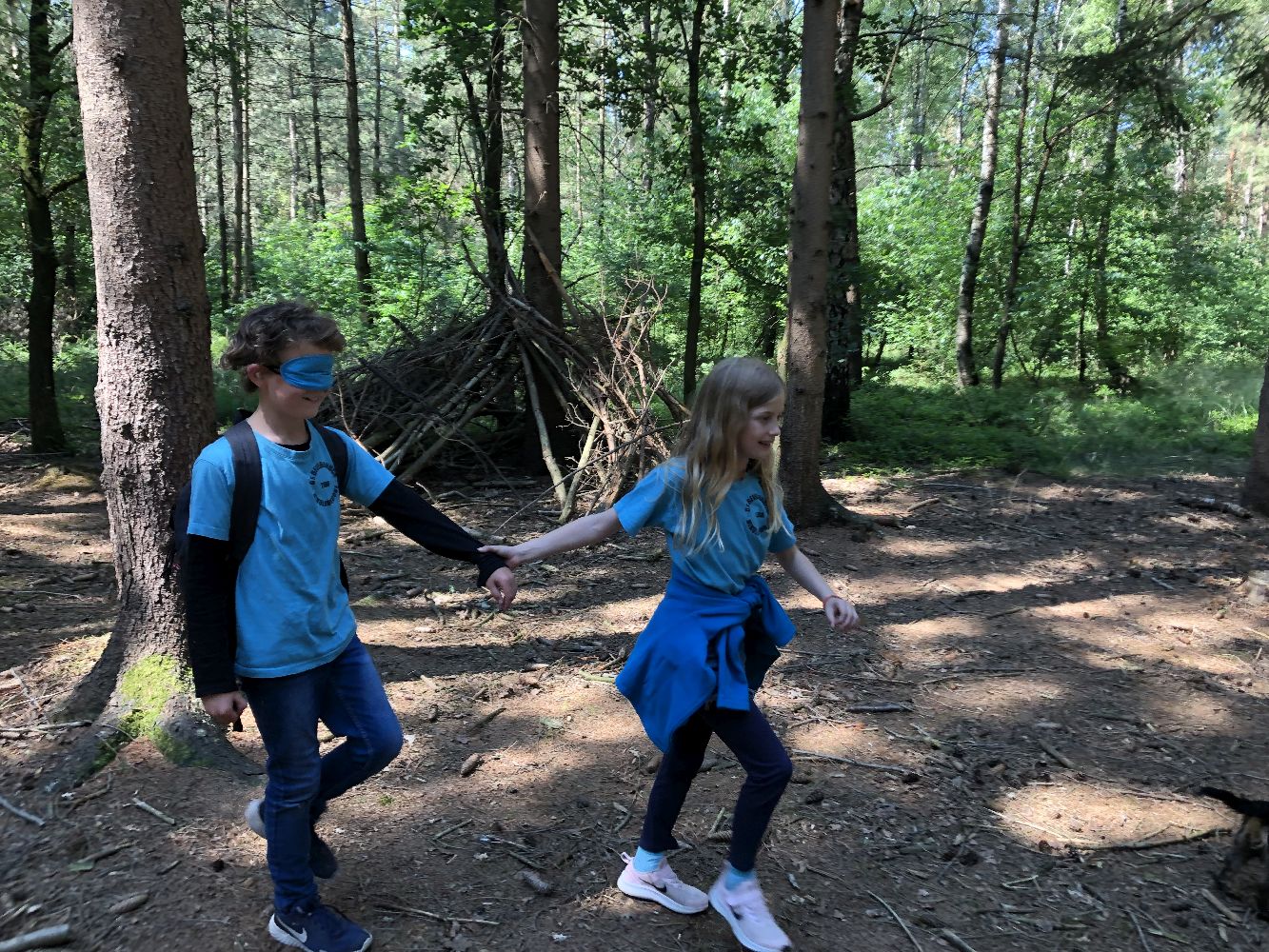 Zum Abschluss gab es noch ein Partnerspiel, bei dem man sich mit verbundenen Augen einen Baum erfühlen und später wiederfinden sollte. Die Kinder zeigten dabei viel Geschick und Vertrauen in ihre PartnerInnen und so konnten alle spätestens beim 2. Versuch ihren Baum wiederfinden.