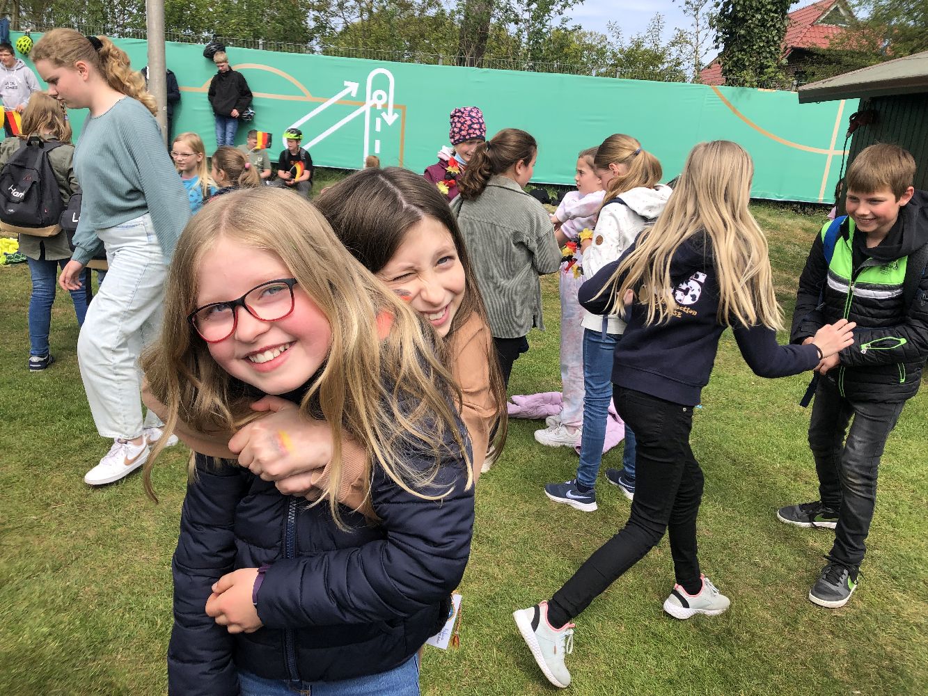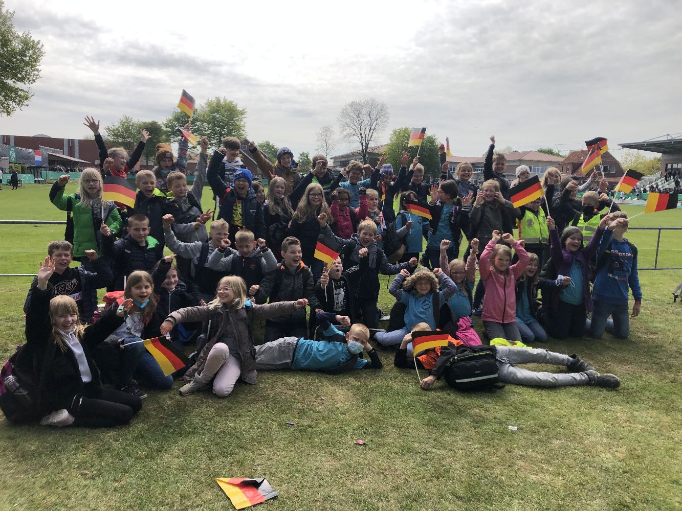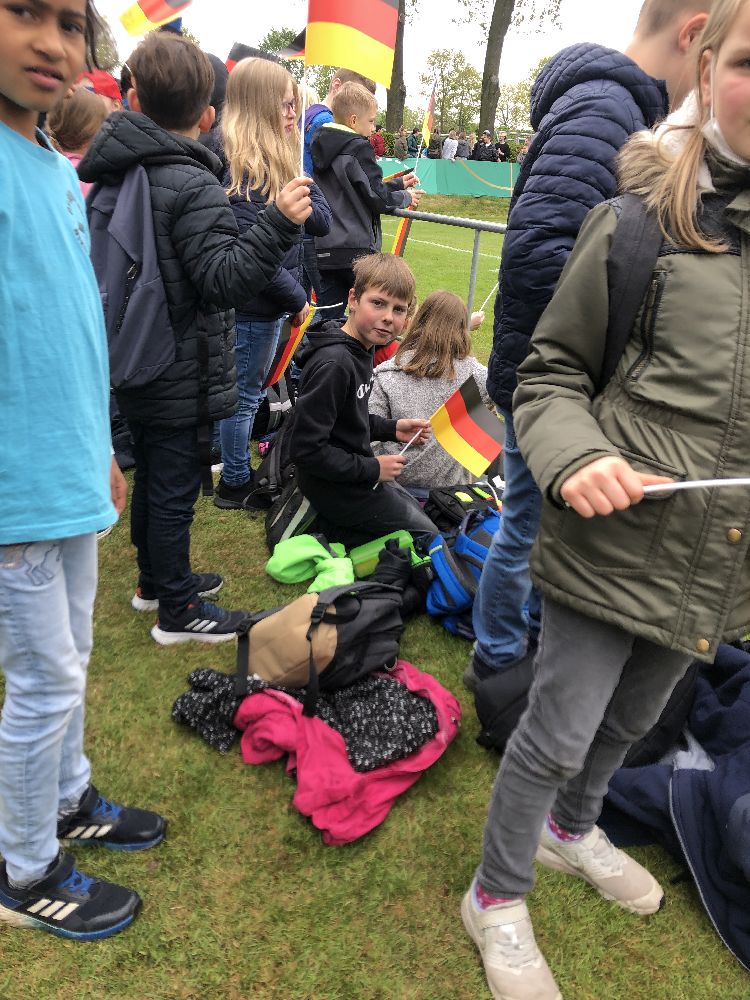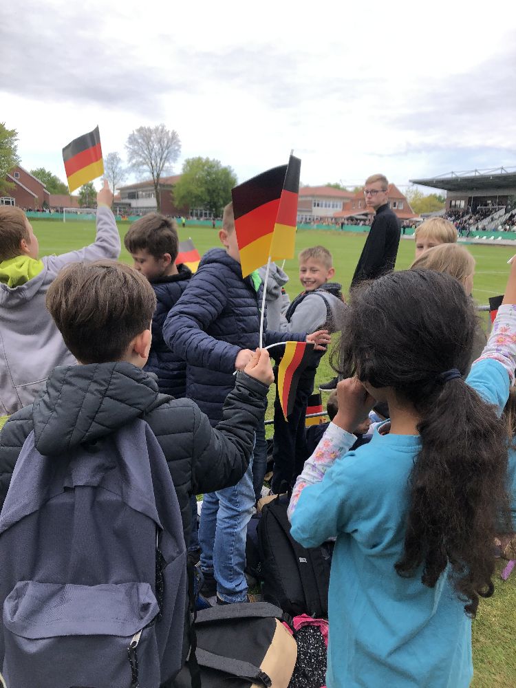 In der 2.  Spielhälfte ging es dann ähnlich flott weiter und schon nach ein paar Minuten trafen die Deutschen endlich zum 1:0. Die ausgelassene Freude der Spieler konnten unsere Schülerinnen und Schüler direkt vor ihren Augen verfolgen. Auch beim späteren 2:0 jubelten die Kinder und waren noch einmal voller Euphorie. Diese konnte auch der anschließende Anschlusstreffer der Niederländer nicht trüben.