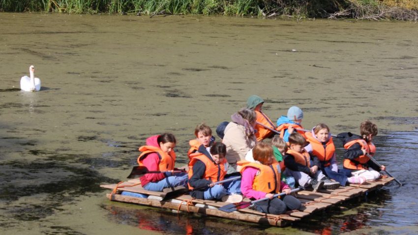 Beim dem Projekt Floßbau kam es auf die Teamfähigkeit an. Nur gemeinsam konnte der Rahmen verschraubt und die Holzplanken verzurrt werden. Nur gemeinsam konnte das Floß zu Wasser gelassen werden. Und nur gemeinsam konnte das Floß gesteuert werden, um am Ende einen Schatz zu im Dickicht des Ufers zu finden.