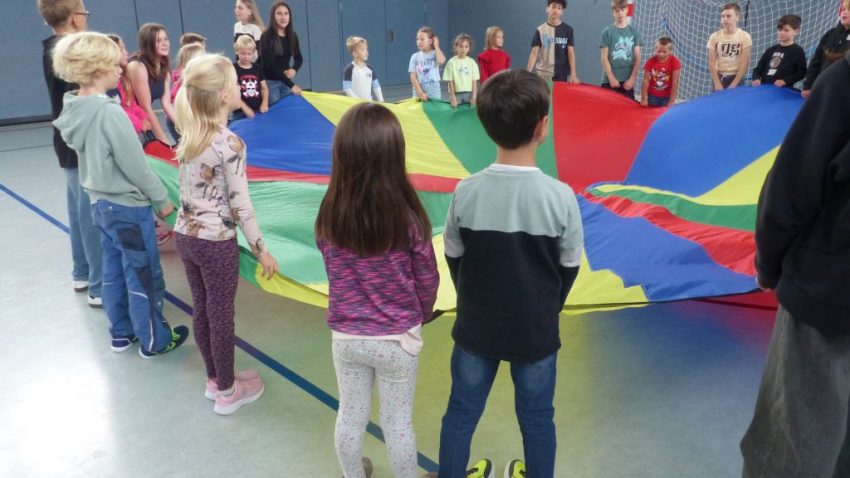 Nach einer Kennenlernphase erkundeten die Schüler gemeinsam die Realschule. Anschließend folgte eine gemeinsame Pause auf dem Schulhof. In der Turnhalle wurden verschiedene Spiele angeboten. Das Schwungtuch und das Spiel „Kettenfangen“ brachten alle Schüler ins Schwitzen. Mit vielen positiven Eindrücken wurden die Zweitklässler von den Realschülern zurück in die Grundschule begleitet. Das Projekt gab den Zweitklässlern die Gelegenheit, Ängste und Vorurteile gegenüber den „Großen“ abzubauen, die Realschule kennenzulernen und neue Freundschaften zu schließen.