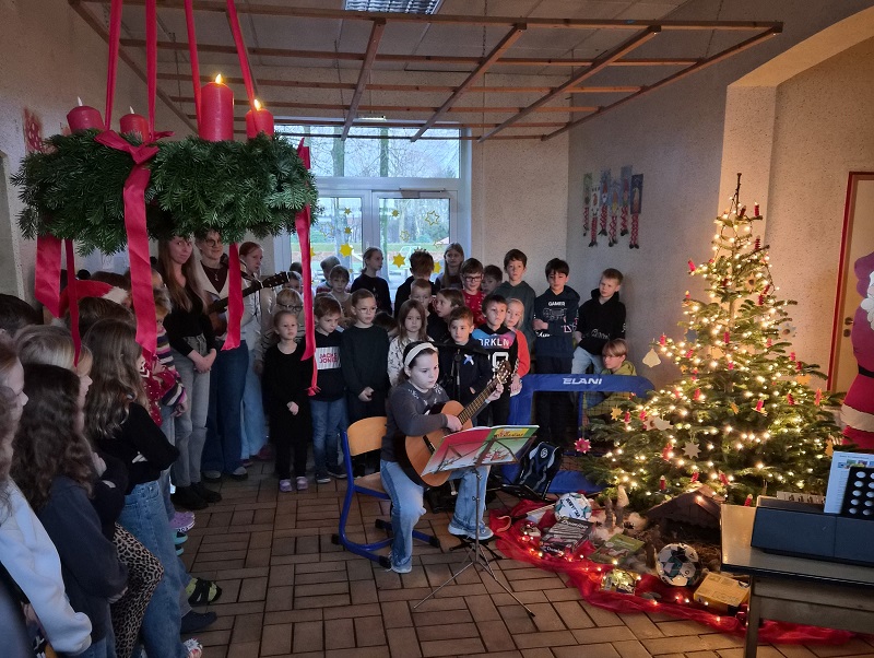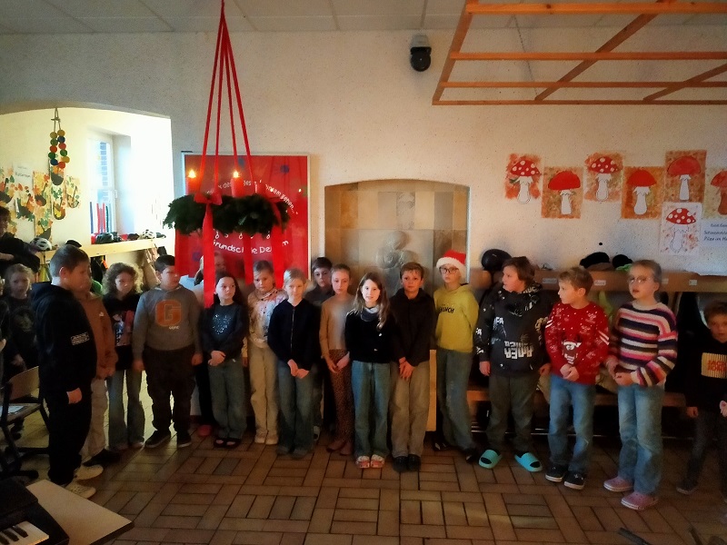 Wie an jedem Adventsmontag versammelte sich zum 2. Advent unsere Schülerschaft zu einer Adventsbesinnung im geschmückten Schulflur bei lieblichen Gedichten und musikalischen Klängen im Team oder auch als mutige Solo-Darbietung.