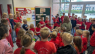 Am Dienstag, dem 30. September, wurde an unserer Schule das alljährliche Erntedankfest gefeiert. In einem feierlichen Gottesdienst mit Pastor Strodt kamen alle Schülerinnen und Schüler, Lehrkräfte,Eltern, Großeltern und viele andere Gemeindemitglieder zusammen, um sich gemeinsam für die Ernte und die Gaben der Natur zu bedanken. Die zweite Klasse stimmte uns im Schulflur vor dem liebevoll gestalteten Erntedanktisch mit den Liedern „Hört ihr die Drescher“ und „Hejo, spann den Wagen an“ musikalisch auf die Herbstzeit ein. Anschließend gab es ein reichhaltiges und gesundes Erntedank-Frühstück für die Kinder unserer Schule: Frisches Obst und Gemüse, leckere Brote, verschiedene Marmeladen, Quark und Eier waren phantasievoll angerichtet.