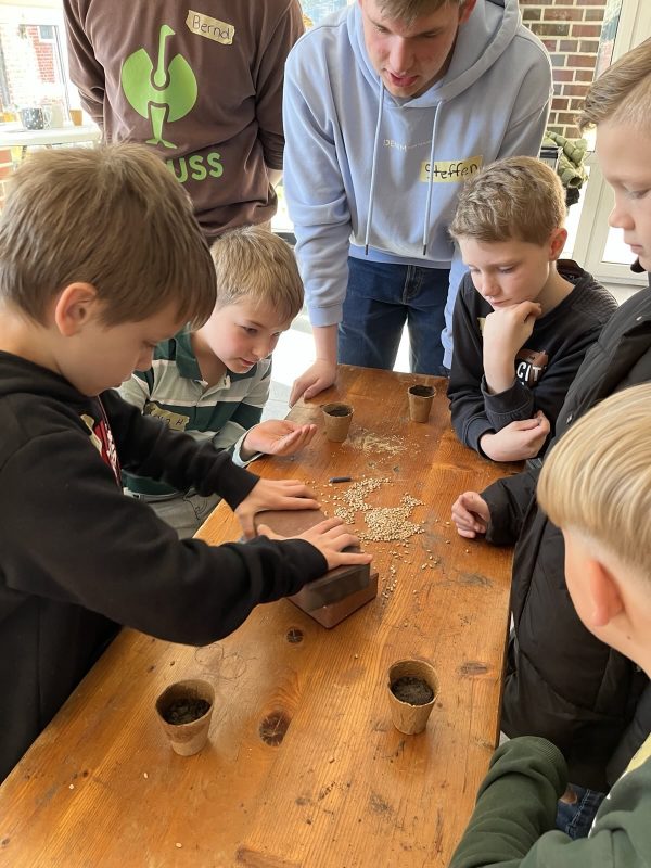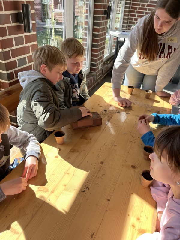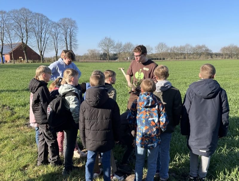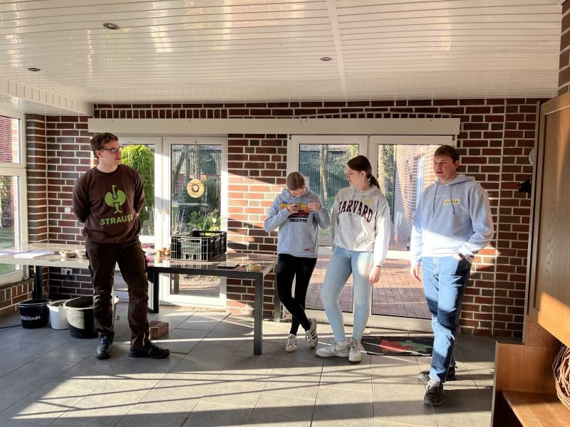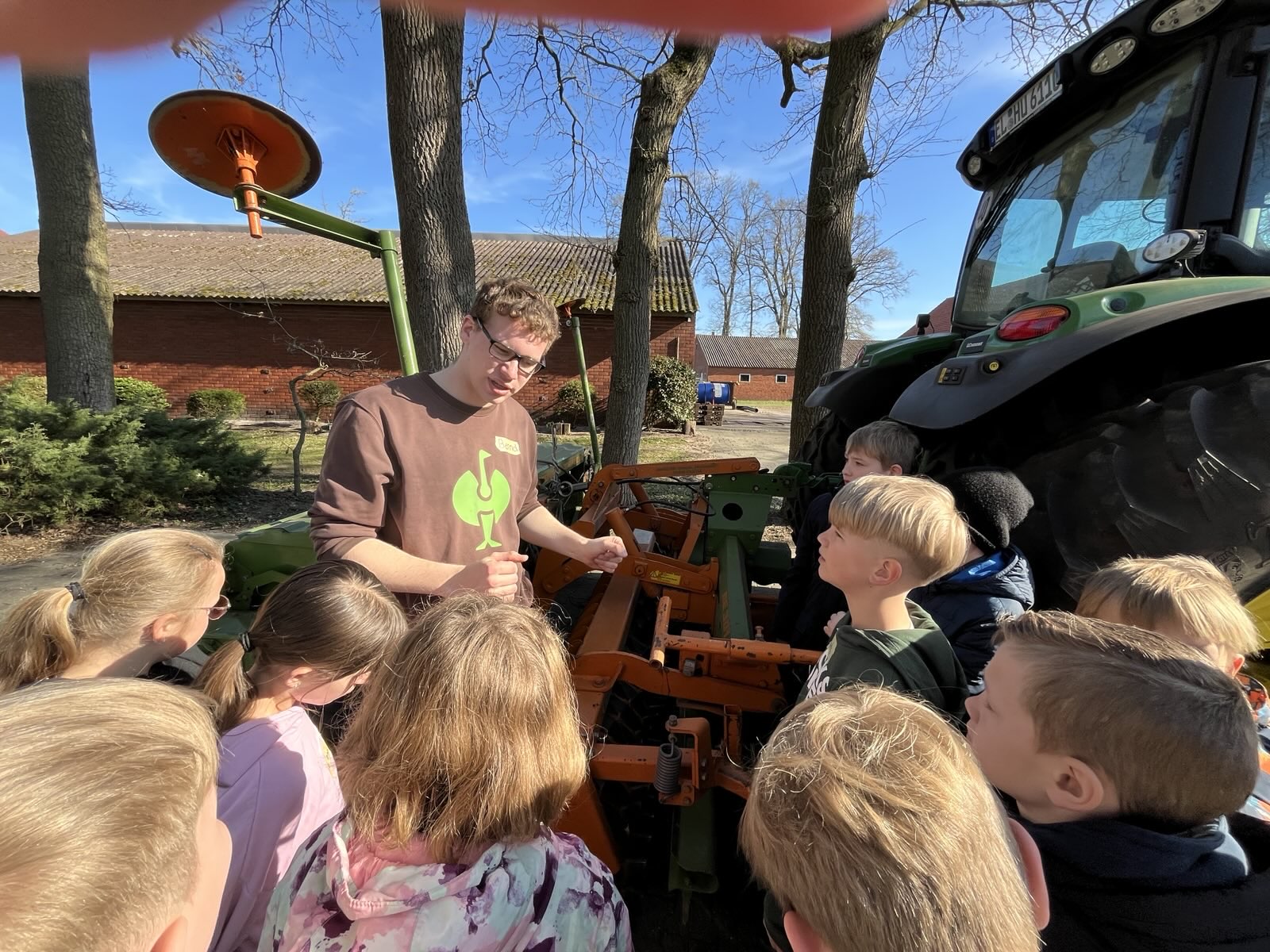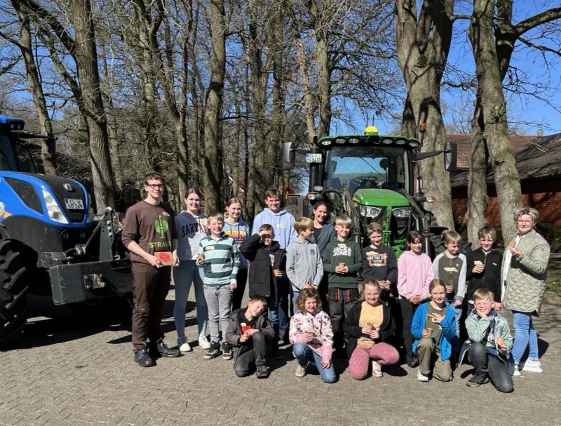 Im Rahmen ihres Schulprojektes führten vier Schüler*innen des beruflichen Gymnasiums der BBS Lingen mit den Schwerpunkten Sozialpädagogik sowie Agrar- und Umwelttechnologie einen besonderen Lernvormittag mit unseren Schüler*innen der Klasse 4 auf dem Hof Hunfeld in Dersum durch.