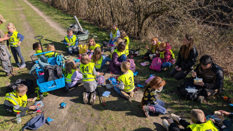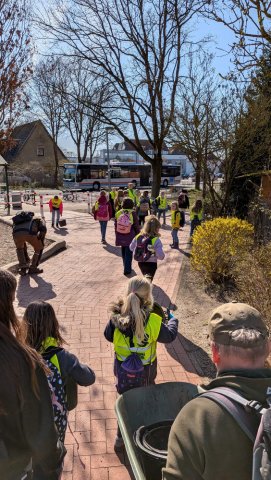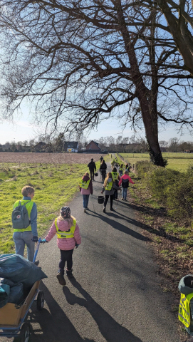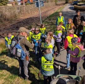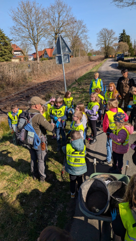 Bei strahlendem Sonnenschein machten sich die Kinder der Grundschule Diepenau am 05.03.2026 auf die Achse um zusammen mit zwei Lehrkräften und Herrn Sascha Trau von der Biologischen Station Minden-Lübbecke rund um die Schule Müll zu sammeln.