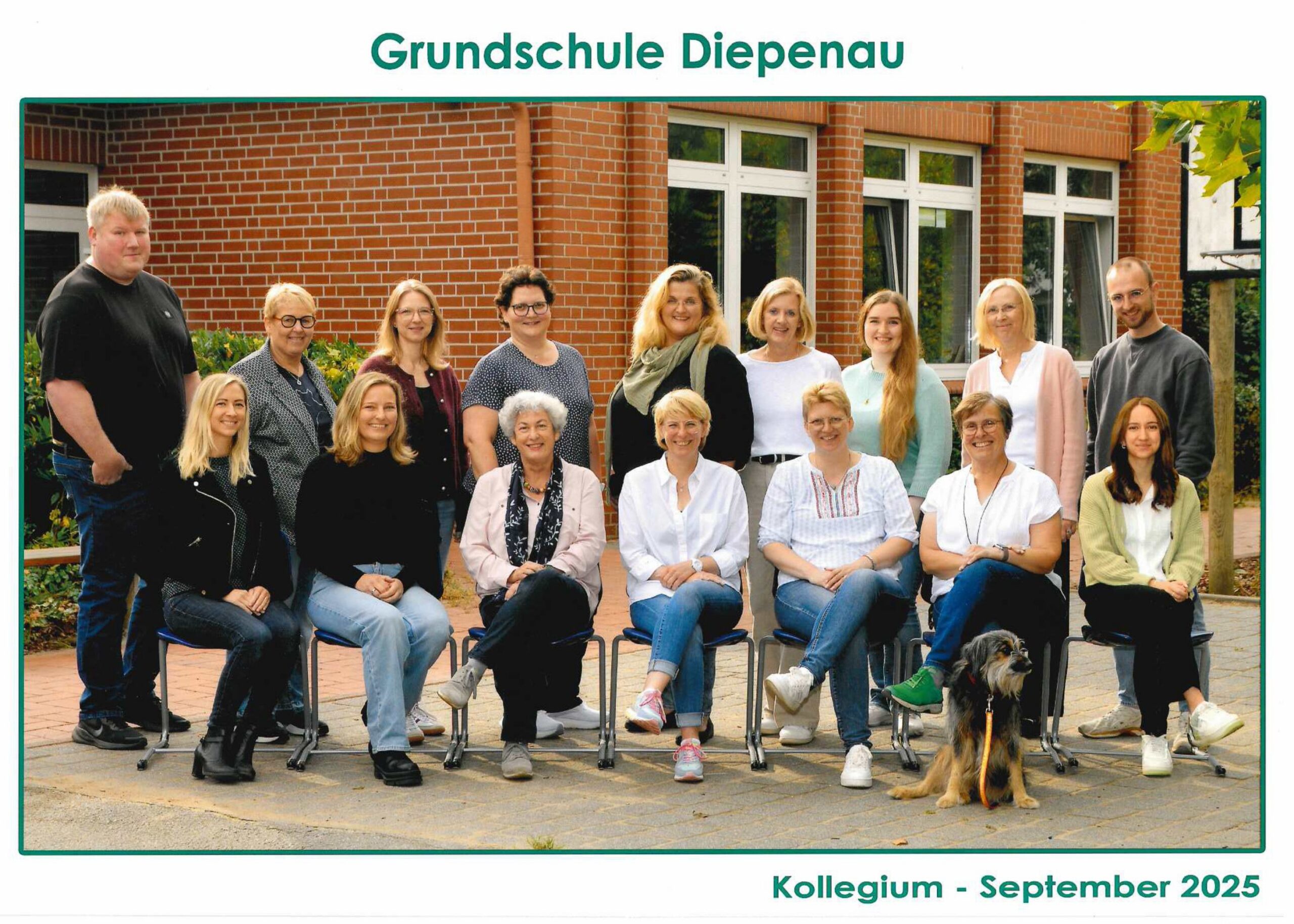 Das Team der Grundschule Diepenau besteht aus 10 Lehrerinnen, einschließlich der Förderschullehrkraft, der Abordnungen aus Wagenfeld und von der Oberschule Uchte, unserer Lehrerin im Vorbereitungsdienst und der Schulleitung, der Sekretärin, unserem Hausmeister, vier Pädagogischen Mitarbeiterinnen, einer „Bufdi“, unseren Küchenkräften und unserem Schulhund. Wir arbeiten gut und gerne zusammen und legen viel Wert darauf, ein angenehmes Schulklima für die ganze Schulgemeinschaft zu schaffen.