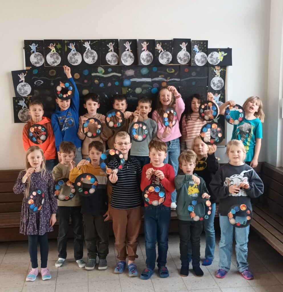Kurz vor den Osterferien fanden an unserer Schule Projekttage zum Thema „Weltall“ statt. Es wurden Raketen gebaut, Astronauten-Kunstwerke geschaffen, Experimente und viele weitere spannende Aktionen, die den Kindern das Thema näher gebracht haben, durchgeführt.