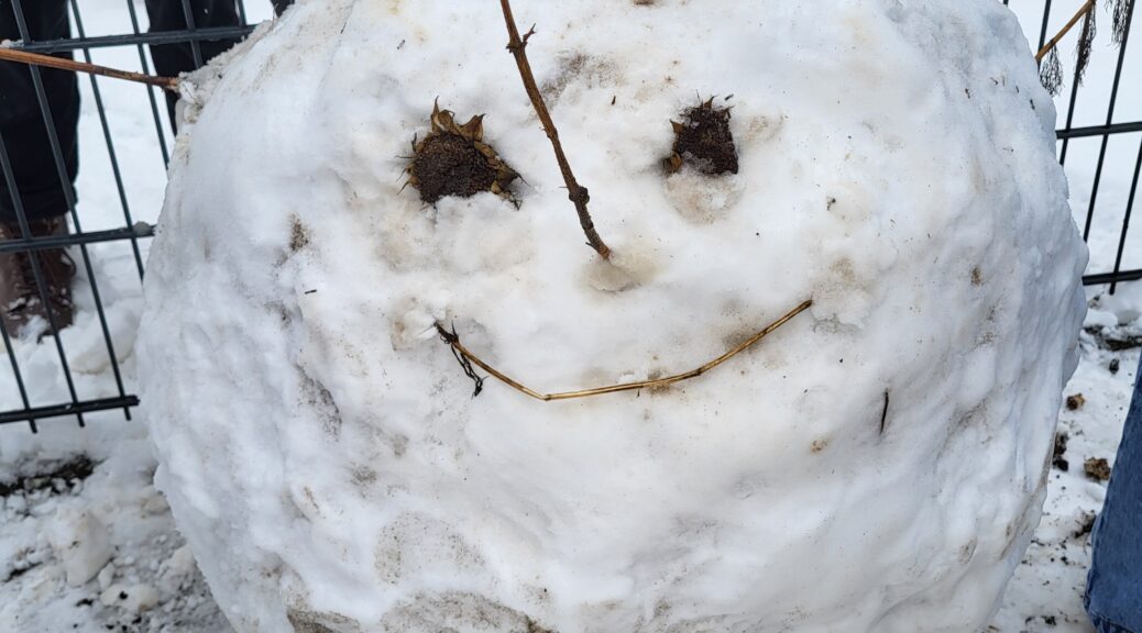 Die Kinder aus der Ganztagsbetreuung nutzten den diesjährigen Schneesegen, um den Schulhof mit verschiedenen lustigen Schnee-Wesen zu schmücken.
