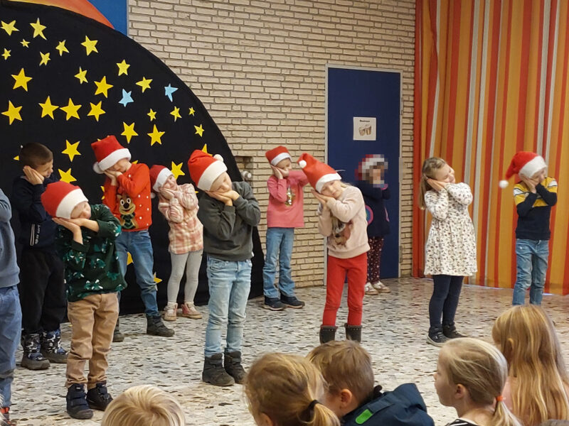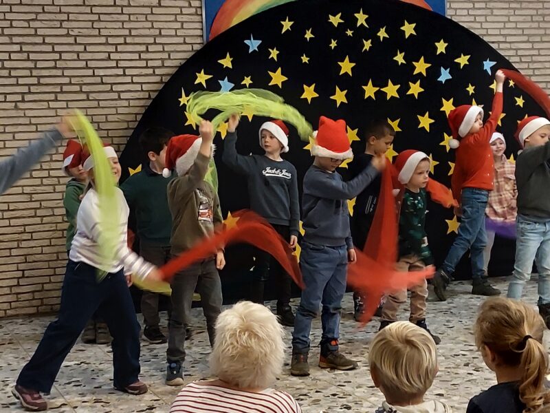 In der letzten Schulwoche vor den Weihnachtsferien stimmten sich diese Kinder also gemeinsam auf das bevorstehende Fest ein. Dazu hatten die Klassen 1a, 1b, 1c und 1d ein buntes Programm zusammengestellt, das aus Tänzen, Liedern, Gedichten und einem Theaterstück bestand.
