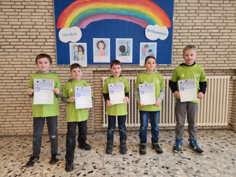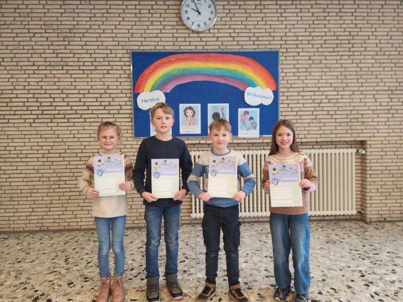 Nach spannenden Spielen setzte sich das Team „Die 4 Bockwürste“ durch und wurde Schulsieger. Sie qualifizierten sich für die Regionalmeisterschaft in Voxtrup, die am 17. April stattfinden wird.