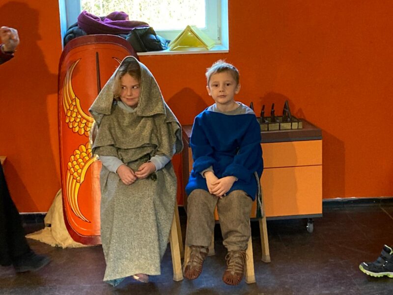 Nach einer kleinen Spielepause auf dem angrenzenden Spielbereich ging es dann in einen der Seminarräume. Hier erfuhren die Kinder viel über das Leben der Germanen und Römer vor ca. 2000 Jahren.
