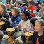 Für diese Woche galt ein besonderer Stundenplan. Jeden Morgen trafen sich zunächst die Schülerinnen und Schüler aller Klassen in der Sporthalle zum gemeinsamen Trommeln, Singen oder Tanzen, anschließend widmeten sich entweder die Jahrgänge eins und zwei oder die Jahrgänge drei und vier dem ‚Trommelzauber‘. In den Unterrichtsstunden im Klassenraum bastelten und gestalteten die Schülerinnen und Schüler ihre Kostümierung für die gemeinsame Abschlussveranstaltung und verwandelten sich mit selbstgebastelten Masken und farblich passender Kleidung in Gazellen, Giraffen, Elefanten und Affen