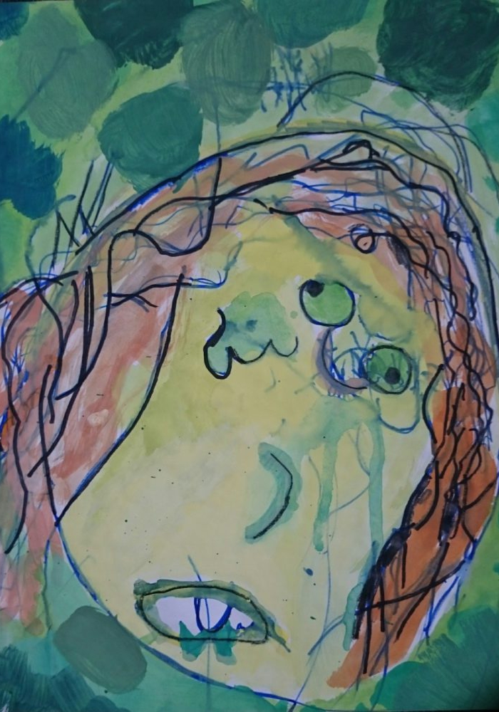 Selbstportraits einer dritten Klasse. Gemalt nach Partnerdiktat