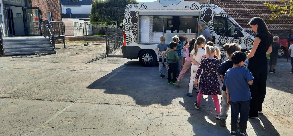 Spendiert wurde das Eis vom Förderverein unserer Schule, der ebenfalls den Besuch des Eiswagens organisiert hat.