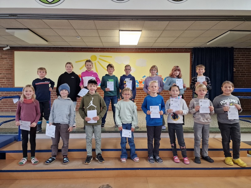 Auch die Kinder, die ein Laufabzeichen geschafft haben, wurden auf der Bühne beglückwünscht und geehrt.