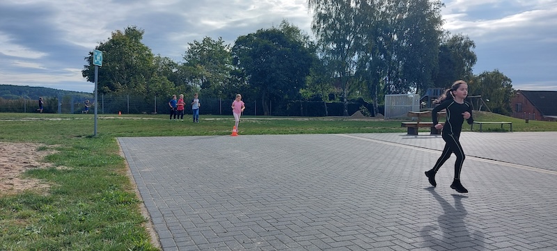 In der Klasse 3b liefen 13 Kinder 15 Minuten in beliebigem Tempo ohne Pause (Laufabzeichen Stufe 1) und 10 Kinder schafften es sogar 30 Minuten in beliebigem Tempo ohne Pause zu laufen (Laufabzeichen Stufe 2).