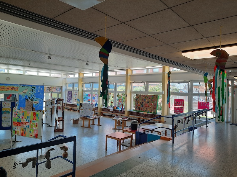 Am 14.06.2024 öffnete die Grundschule Grasleben ihre Türen, um gemeinsam die entstandenen Werke der Projektwoche zu bestaunen. Denn die Projektwoche vom 10.06.2024 bis 14.06.2024 war ganz dem Fach Kunst verschrieben. Jede Klasse malte, zeichnete oder bastelte Kunstwerke zu einem bestimmten Thema. Dabei wurden mitunter Künstler wie Hundertwasser, Monet und Frida Kahlo thematisiert. Aber auch alltägliche Themen wie z.B. die Umwelt oder Tiere fanden in der Projektwoche Aufmerksamkeit. Nach vier ertragreichen Tagen bauten die Klassen am Freitag ihre Kunstausstellung auf. Am Nachmittag erschienen zahlreiche Familien, Freunde und Interessierte und bestaunten die vielfältigen Werke der kleinen Künstler. Zusätzlich gab es viele unterhaltsame und kreative Mitmachmöglichkeiten. Von Gesichtsmalerei über Murmelbahnen bis hin zum Gemeinschaftsbild gab es genügend Auswahl für jedermann. Zur Stärkung gab es eine umfassende Auswahl an Leckereien in Form von Kuchen, Würstchen, etc.. Allerdings wäre dieses schöne Schulfest ohne die Beteiligten nur halb so schön geworden. Daher wollen wir uns bei allen beteiligten Helfern, dem Förderverein und den zahlreichen Besuchern bedanken, mit deren Zusammenarbeit das Schulfest zu einem schönen Abschluss der Projektwoche und des vergangenen Schuljahres wurde.