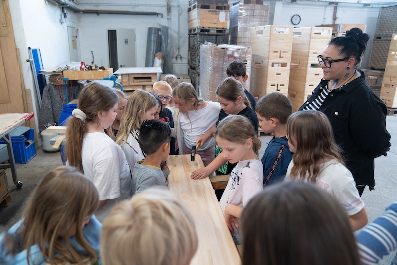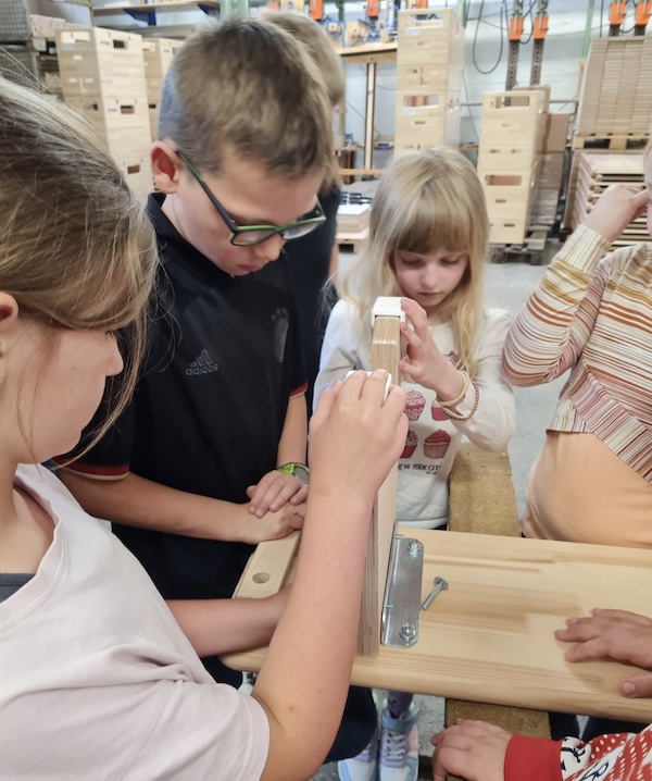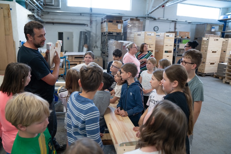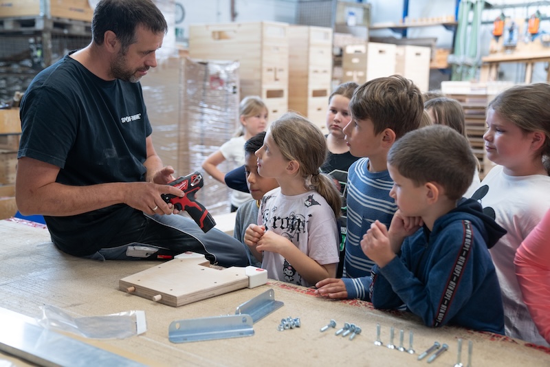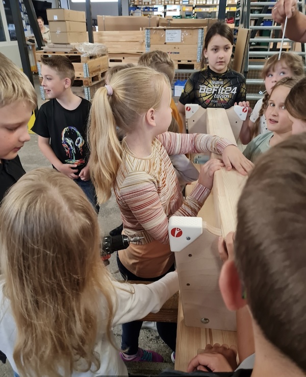 Die dritten Klassen durften auch in diesem Jahr Sport-Thieme einen Besuch abstatten. Wir wurden mit einem leckeren Frühstücksbüffet begrüßt und schauten passend zum Feuerwehr-Thema im Sachunterricht den Feuer-Check mit Checker Can. Gut gestärkt bekamen wir eine Führung mit interessanten Informationen zum Betrieb, die in der Werkstatt endete. Dort durften beide Klassen eine kleine Turnbank bauen und sie anschließend für den Klassenraum mit zur Schule tragen. Herzlichen Dank für die Einladung und den tollen Vormittag!