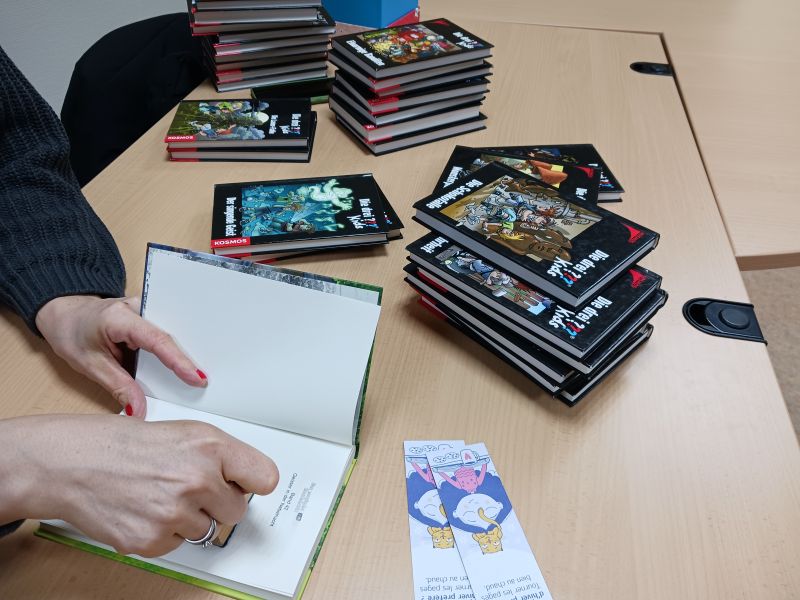 Nun gibt es wieder genug Lesestoff! Die Bücherei wurde mit zahlreichen neuen Büchern ausgestattet. Hier werden sie mit einem Stempel versehen. Die Kinder hatten sich vor allem Bücher der Serien „Magisches Baumhaus“ und „Drei Fragezeichen kids“ gewünscht. Toll, dass der Förderverein diesen Wünschen gezielt nachgekommen ist und die Leseware gleich stapelweise eingekauft hat. Da freuen wir uns!