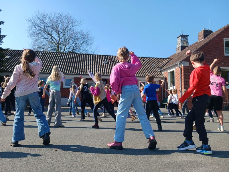 Auch in diesem Jahr heißt es wieder „Fit in den Frühling“! Auch wenn der Frühling in diesem Jahr erst am 20. März beginnt. In zahlreichen Stationen können die Kinder z.B. zwischen Gymnastik, Tanz, Obstspießen oder Brotgesichtern auswählen. In der Aula wurde alles noch einmal erklärt. Auch eine Entspannungsstation ist dabei, damit man zwischendurch mal wieder etwas ausruhen kann. Die Sonne macht mit – der Himmel ist blau, und so können wir uns so richtig auf den Frühling freuen. Tanzen auf dem Schulhof!