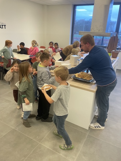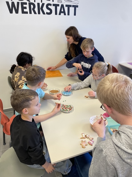 Für das leibliche Wohl war ebenfalls bestens gesorgt: Dank der tatkräftigen Unterstützung unserer Eltern und Elternvertreterinnen und Elternvertreter konnten sich die Kinder mit frisch gebackenen Waffeln stärken. Außerdem hatten die Klassen die Möglichkeit, gemeinsam Plätzchen zu backen, die in der Adventszeit zusammen gegessen werden. An dieser Stelle möchten wir uns ganz herzlich bei unserer engagierten Elternschaft und allen helfenden Elternvertreterinnen und Elternvertretern bedanken.