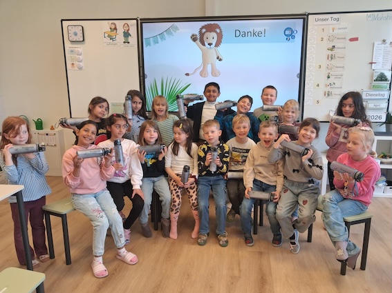 Die Schulgemeinschaft der Grundschule am Sportzentrum durfte sich heute über eine besondere Überraschung freuen: Der Förderverein überreichte allen Kindern und Mitarbeitenden neue Trinkflaschen.