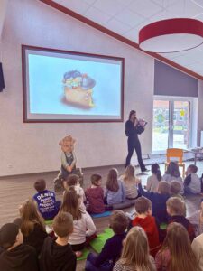 Doch es blieb nicht nur beim Zuhören: Mit viel Freude brachten sich die Schülerinnen und Schüler aktiv in die Lesung ein. Sie beantworteten Fragen, äußerten Vermutungen zum weiteren Verlauf der Geschichte und sorgten mit ihren Ideen und Reaktionen für eine lebendige und fröhliche Atmosphäre.