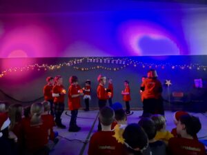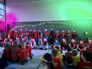 Am 18.12.2025 feierte die gesamte Schule eine stimmungsvolle Weihnachtsfeier in der Bewegungshalle. Alle Klassen beteiligten sich mit tollen Beiträgen und sorgten für ein abwechslungsreiches Programm: Es wurde gesungen, getanzt, ein Gedicht vorgetragen und ein kleines Theaterstücke aufgeführt. So entstand eine festliche, weihnachtliche Atmosphäre, die alle begeisterte.