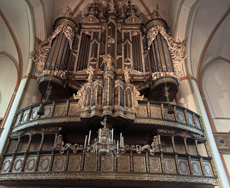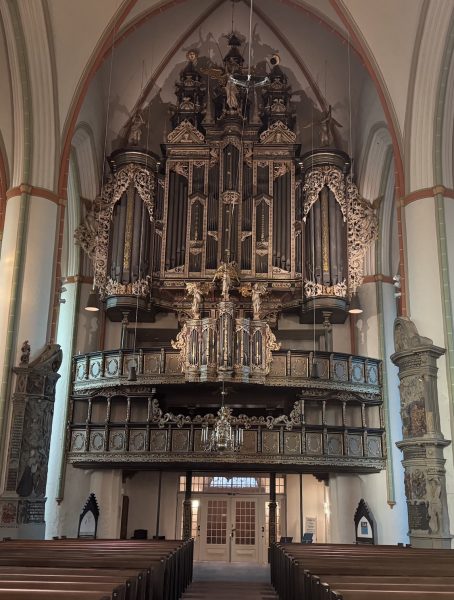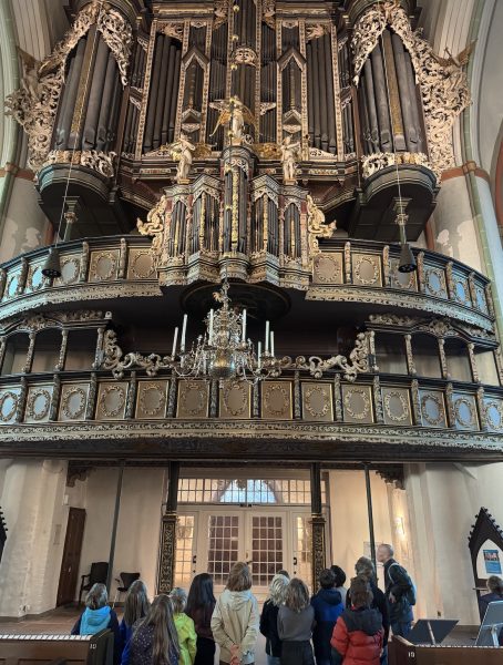 Eine Stunde lang durften wir alleine in der St. Johanniskirche den Klängen der Orgel lauschen und das Prinzip der Orgelmusik selbst nachstellen und ausprobieren. Zum Abschluss durften wir sogar auf der großen Bach-Böhm-Orgel spielen und waren begeistert von den vielen Pfeifen und Registern der Orgel.