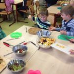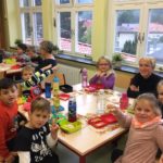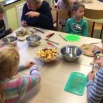 Am letzten Schultag vor den Herbstferien bereiteten die Kinder der Klasse 1a und 1b passend zur Einführung des Buchstabens „O“ einen Obstsalat zu. Dabei wurden sie von tatkräftigen Eltern unterstützt. Nach dem Schälen und Schnippeln wurde der Obstsalat dann gemeinsam zum Frühstück verzehrt.