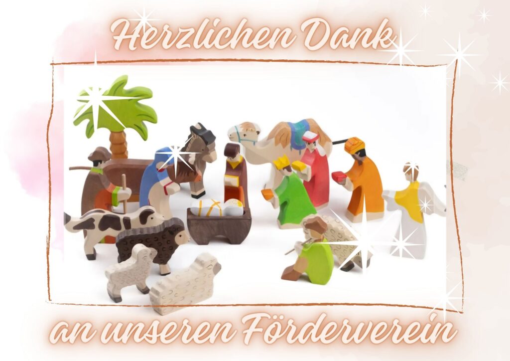 Unser engagierter Förderverein hat uns neue, liebevoll gestaltete und kindgerechte Krippenfiguren geschenkt. Die Figuren sind robust und laden unsere Kinder zum Staunen, Erzählen und Mitspielen ein. Mit den neuen Krippenfiguren können die Kinder die Weihnachtsgeschichte also auf ihre ganz eigene Weise entdecken, nachspielen und immer wieder neu erleben. So wird Weihnachten für sie nicht nur erzählt, sondern richtig lebendig.