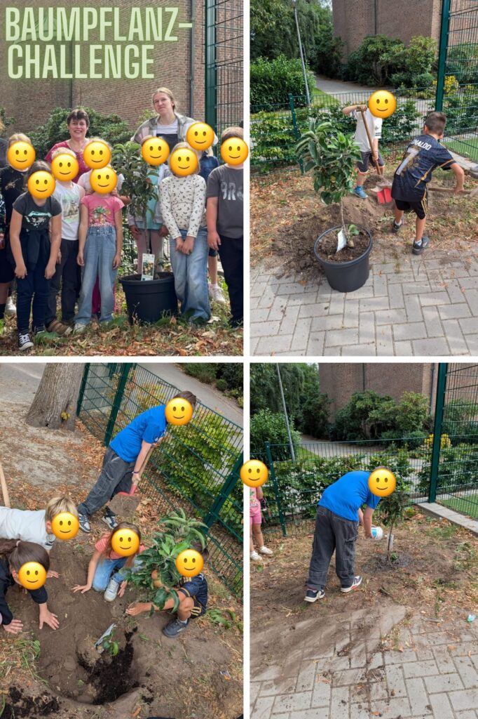 In den Sommerferien hat das Blumenhaus Merßing bei der Baumpflanz-Challenge mitgemacht – und dafür einen tollen Apfelbaum ausgesucht. Diesen Baum hat das Team um Lucy und Hermann Merßing nun unserer Grundschule gespendet.
