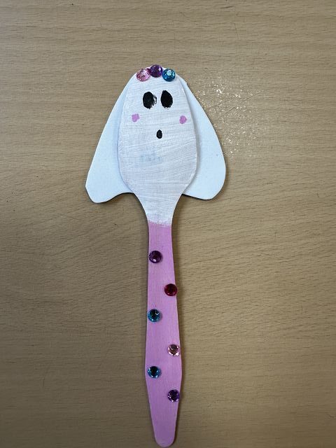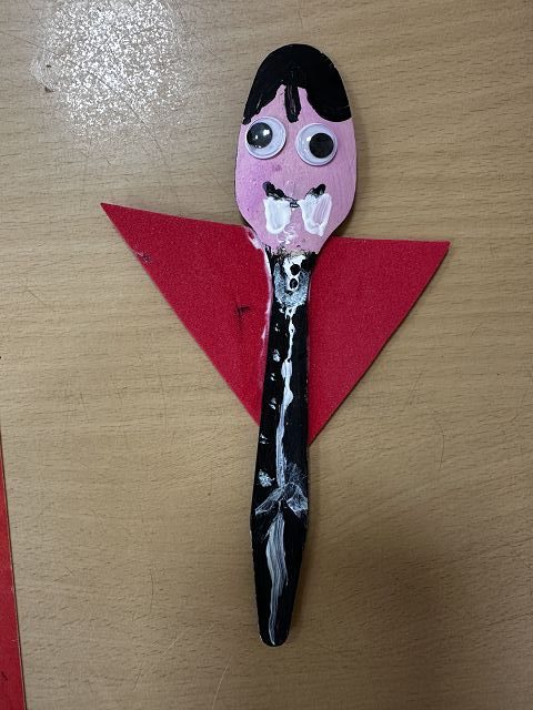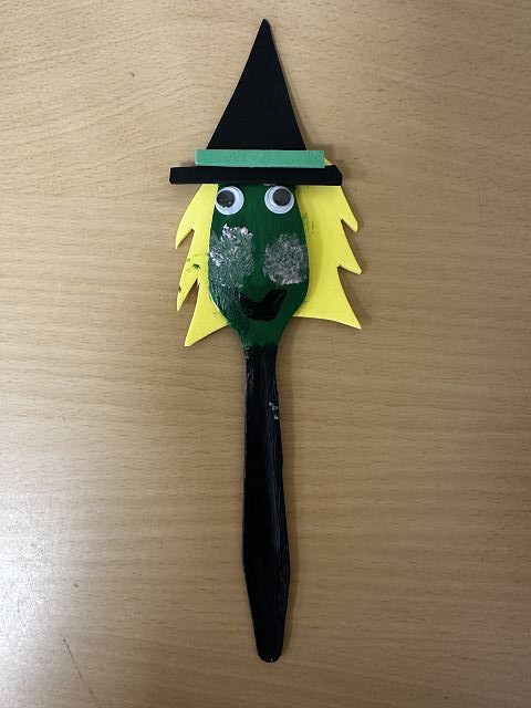 In der 3a gab es bereits einen Halloweenbasteleinsatz. In zwei Kunststunden verwandelten die Kinder mit Hilfe von Acrylfarbe, Moosgummi und Wackelaugen, Holzlöffel in Spukfiguren. Alle hatten großen Spaß.
