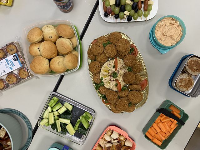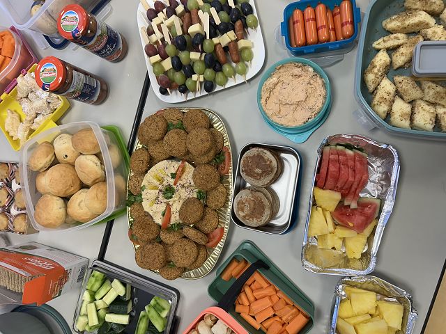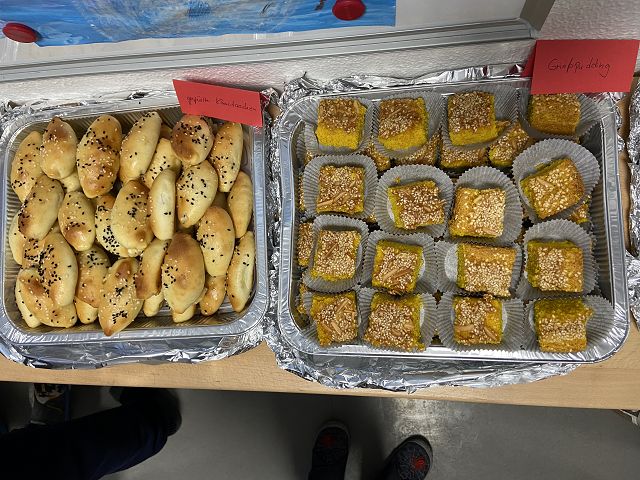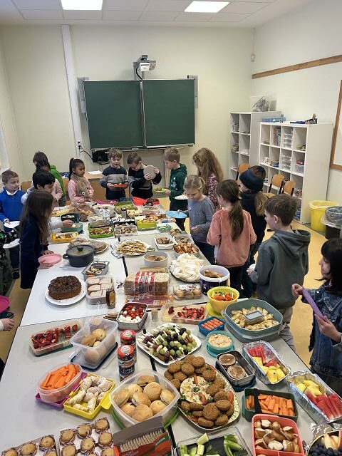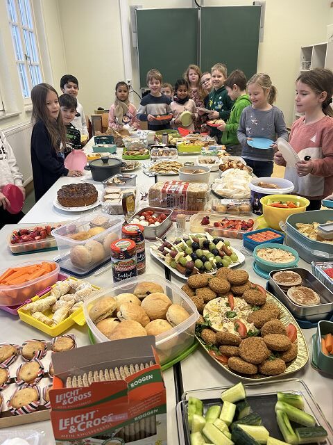 Damit unser Buffet bunt und vielfältig, wie unsere Schulgemeinschaft wird, hat jedes Kind eine kleine Speise aus der eigenen Kultur mitgebracht.
