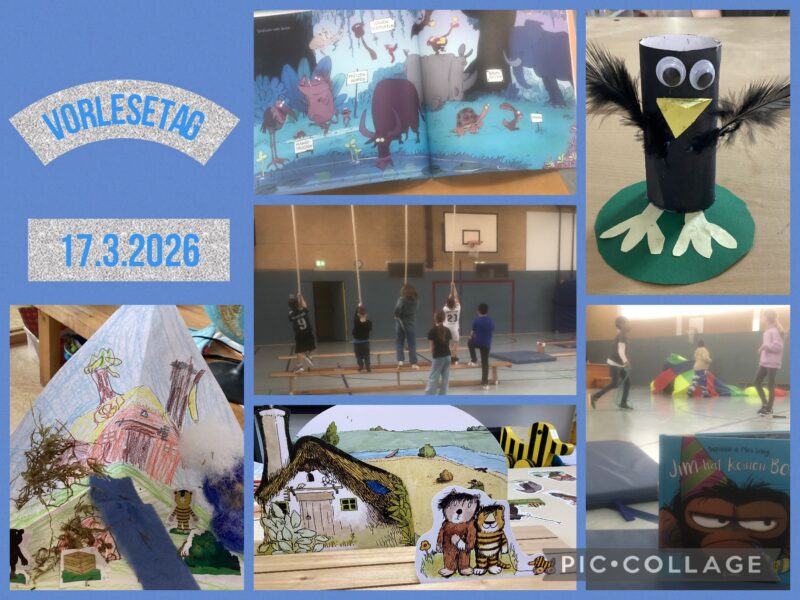 De Kinner kunnen sük ut en heel Bült Boken de Geschichten utsöken, de se geern hören wullen. De Utwahl was groot: „Schule der magischen Tiere“, „Der kleine Rabe Socke“, „Momo“ of „Der Findefuchs“! Dat geev ok en plattdüütsken Geschicht to hören: „Oh, wat mooi is Panama“. All Mitarbeiders ut de School hebben en Geschicht vörlesen un daarto en Angebood vörbereidt. In de Turhall wurr Jims Gebuursdag fiert, in de Köken rook dat smackelk na Kokjes, dat geev wat to klütern un to malen. De Vörmiddag gung vööls to fell vörbi!