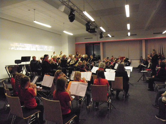 Die Bläserklassen 3 und 4 durften auch in diesem Jahr das Konzert des Chaos-Orchesters mitgestalten. Den Anfang machten die Drittklässler, die erst seit Dezember 2025 auf ihren Instrumenten spielen. Sie präsentierten zunächst ihre ersten Stücke, die nur aus drei Tönen bestanden. Es folgten das Brunnenlied und Mary hat ein kleines Lamm, welches im Wechsel gespielt und gesungen wurde. Alle Stücke wurden von den Kindern angesagt, einige sogar von den Kindern selbst dirigiert! Als nächstes spielten die Viertklässler unter anderem unsere Schulhymne. Dann war das Chaos-Orchester an der Reihe. Das Highlight des Abends war für unsere Schülerinnen und Schüler aber der Abschluss des Konzerts: Drei Stücke und die Zugabe durften sie gemeinsam mit den Musikern des Orchesters spielen. Das war ein fantastischer Auftritt! Danke an das Stadtorchester, dass wir auch in diesem Jahr wieder dabei sein durften!