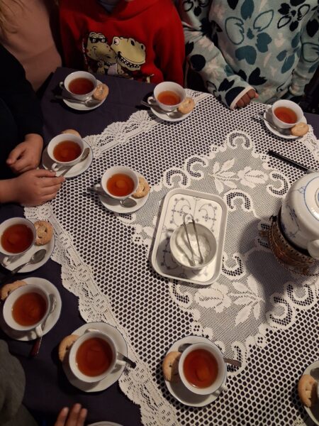 Zurück in der Schule gab es noch einen gemeinsamen Abschluss mit heißem Kakao, Keksen und anderen mitgebrachten Leckereien.