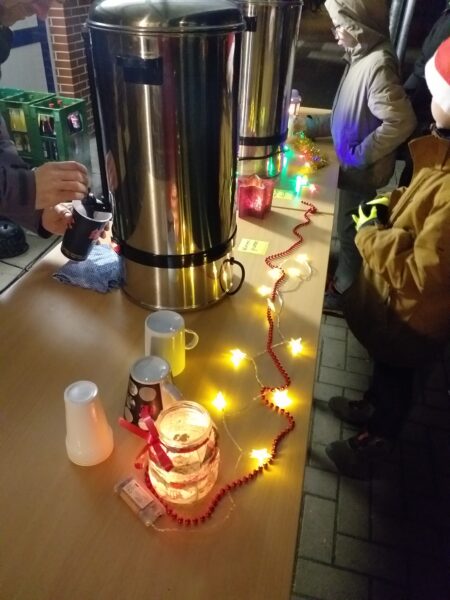 Der 2. Jahrgang organisierte gemeinsam mit der 3d, der 4b und der 4c einen kleinen Weihnachtsmarkt mit Stockbrot, Kinderpunsch und weiteren Leckereien auf dem Schulhof.