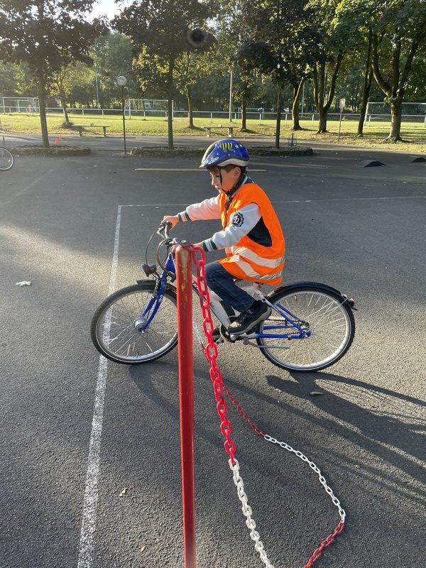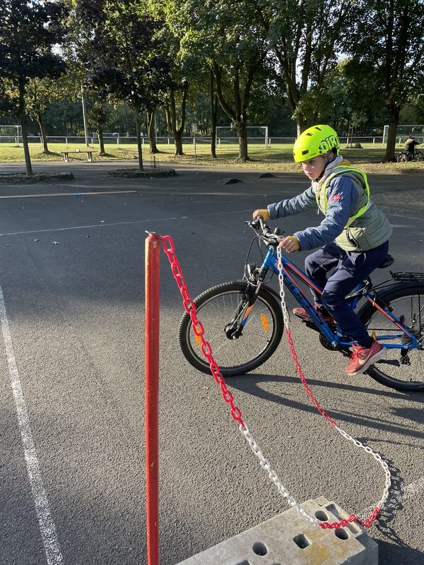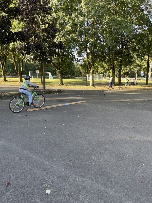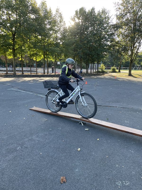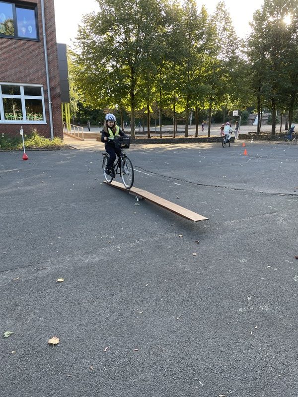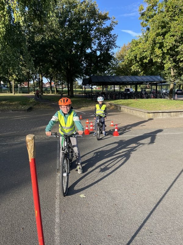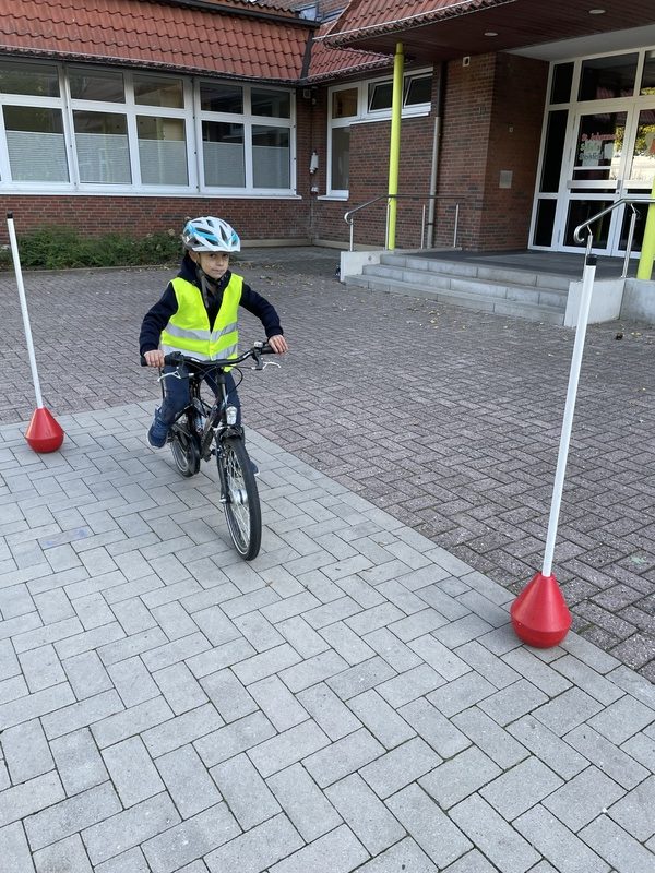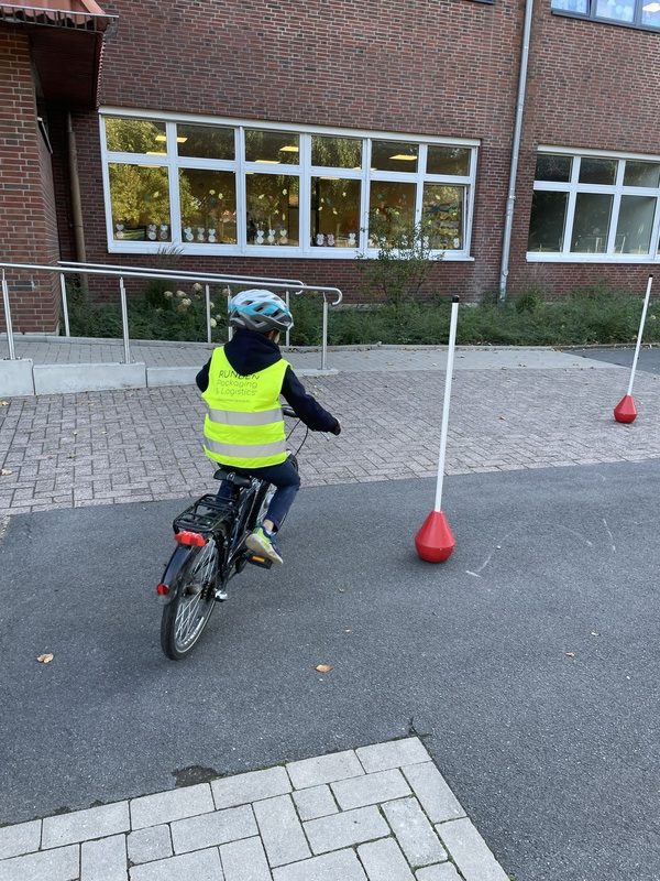 Jedes Kind musste alleine fahren. Entlang der Strecke standen Helfer und Helferinnen, Klassenlehrerinnen und Polizisten, um zu gucken, ob die Kinder an alle Verkehrsregeln denken.