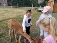 Am 21. Juni 2022 zogen die Klassen 1c und 1d los, um die Steinfelder Alpakas zu besuchen. Viele Kinder dieser Klassen hatten ihren Klassenlehrerin schon häufig von den Tieren erzählt. Nach einem kurzen Marsch zum Gehege durften die Schülerinnen und Schüler, unter Anleitung der Familie Krapp, die Alpakas streicheln und führen. Das war ein tolles Erlebnis für die Kinder! Im Anschluss hatten die Klassen noch Zeit für ein Picknick und freies Spiel auf der anliegenden Wiese. Das war ein toller Tag für alle Beteiligten! Ein ganz besonderer Dank geht an Familie Krapp für die Einladung!