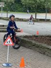 Jedes Kind musste alleine fahren. Entlang der Strecke standen Helfer und Helferinnen, Klassenlehrerinnen und Polizisten, um zu gucken, ob die Kinder an alle Verkehrsregeln denken.