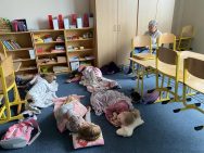 Ein weiteres Highlight in diesem Schwimmhalbjahr war das Schlafanzugschwimmen vor den Osterferien. Die Kinder konnten sich spielerisch damit auseinandersetzen, wie es sich anfühlt mit Kleidung ins Wasser zu gehen und sich damit fortzubewegen. Außerdem lernten die Kinder Möglichkeiten der Selbst- und Fremdrettung kennen.