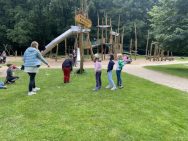 Bei bestem Wetter durfte Jahrgang 2 in diesem Jahr eine Reise mit dem Zug zur Lohner Rehwiese wagen. Der Spielplatz dort begeisterte die Schülerinnen und Schüler. Sie konnten rutschen, klettern, schaukeln oder einfach nur die Seele baumeln lassen. Auch die Fahrt dorthin war ein riesiges Erlebnis, denn wann fährt man schon mit der ganzen Klasse mit dem Zug!