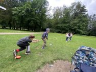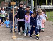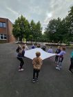 Jede Klasse der Schule bewegte sich mit viel Spaß und tollem Einsatz an den Stationen zur Kinder-Leichtathletik und kooperativen Spielen, welche im Stadion und auf dem Schulhof angeboten wurden. Da gab es unter anderem Rundenlauf, Einbeinsprünge, Medizinballstoßen, Sommerbiathlon, Verkleidungsstaffel und noch vieles mehr! Zum Schluss konnten sich die Klassen beim Staffellauf messen.