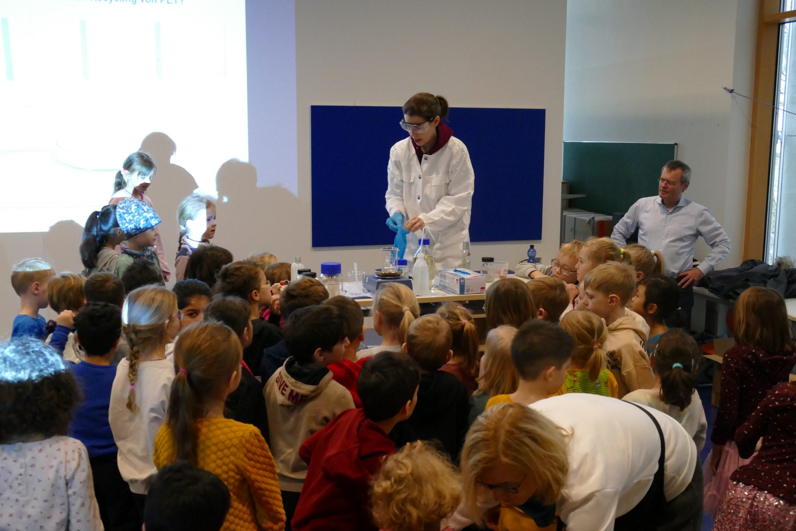 Zum Auftakt nahmen alle Klassen an einer spannenden Kinder-Vorlesung zum Thema “Wie kann man Plastikflaschen wiederverwerten” teil, die Prof. Dr. Scholl und Frau Brepohl vom Institut für chemische und thermische Verfahrenstechnik der TU Braunschweig an unserer Schule durchführten. Anschließend befassten sich die einzelnen Jahrgänge in verschiedenen Projekten mit dem Thema “Müllrecycling und -vermeidung”.